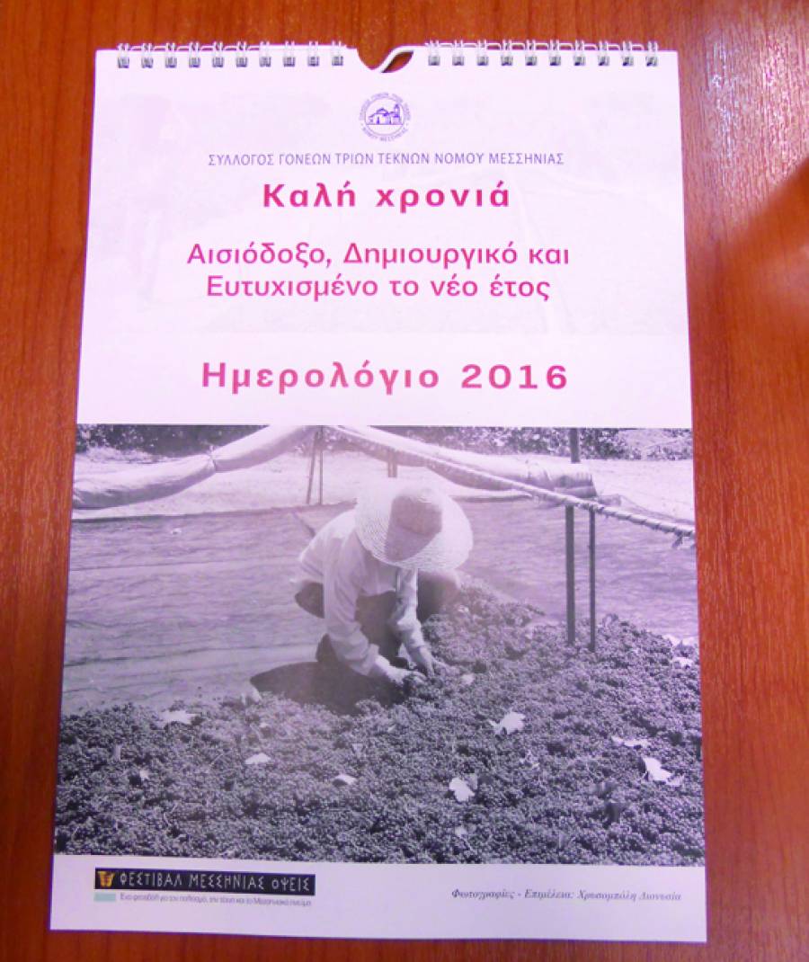Ο Χρήστος Κορομηλάς μιλώντας για το ημερολόγιο χαρακτήρισε "μαύρο χρυσό" της Μεσσηνίας την παραγωγή της κορινθιακής σταφίδας, λέγοντας πως η καλλιέργειά της αποτελεί κινητήρια δύναμη για την αγροτική οικονομία της περιοχής. Μέσα από το ημερολόγιο -όπως σημείωσε- αναδεικνύεται η ιστορία και οι φάσεις παραγωγής της. Είπε ακόμα πως η συνεισφορά του Ηλία Μπιτσάνη υπήρξε καθοριστική, καθώς γνωρίζει πολύ καλά την ιστορία της. Ενημέρωσε επίσης ότι τα μέλη του συλλόγου μπορούν να το παραλάβουν από τα γραφεία του. Οποιοσδήποτε άλλος επιθυμεί να το αγοράσει θα πρέπει να ξέρει ότι η τιμή είναι συμβολική και τα χρήματα θα διατίθενται για το κοινωνικό παντοπωλείο του Συλλόγου Τριτέκνων.