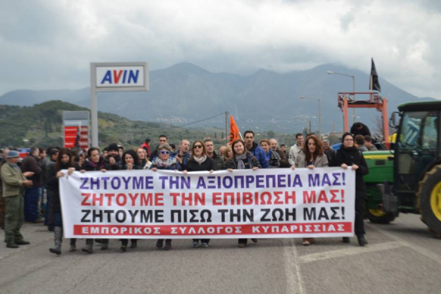 Στην Κυπαρισσία από νωρίς το πρωί έμποροι -έχοντας και αγρότες στο πλευρό τους- είχαν παραταχθεί στις εισόδους δύο σούπερ μάρκετ, "Carrefour" και το "Lidl", προκειμένου να αποτρέψουν την λειτουργία τους. Και ενώ το πρώτο δεν άνοιξε καθόλου, στο δεύτερο ενημέρωναν τον κόσμο και έτσι δεν πήγαινε κανένας να ψωνίσει, με αποτέλεσμα να κλείσει και αυτό μετά από λίγες ώρες.