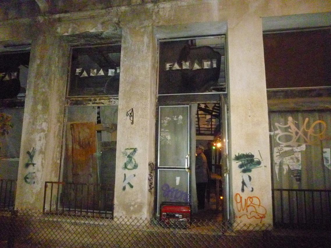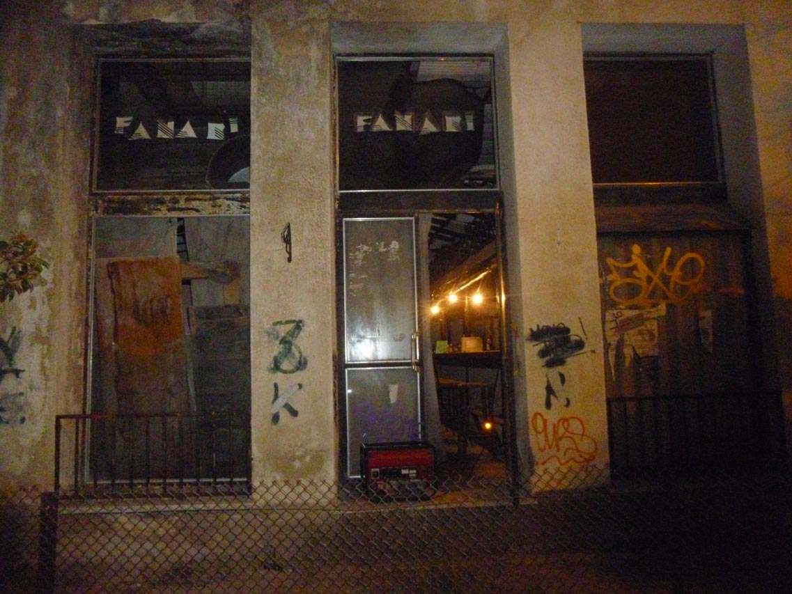 Το μπαρ με τα ποτά σκονισμένα από το 1986, ο τιμοκατάλογος με τις τιμές σε δραχμές, μια αφίσα που είχε μείνει από τότε, η ζωγραφιά με τον κόκορα στις τουαλέτες και οι αυγοθήκες στην κατεστραμμένη οροφή, ζωντάνεψαν μνήμες με μουσική και διασκέδαση, σε κάτι πρωτοποριακό για την πόλη εκείνη την εποχή. Τα τραπεζάκια - ραπτομηχανές δεν υπήρχαν, γιατί όπως μας είπε ο Ανδρ. Βακαλόπουλος τα μάζεψε, γιατί είχαν αρχίσει να μπαίνουν στον εγκαταλειμμένο χώρο και να τα κλέβουν. Ο ιδιοκτήτης μαζί με τον Παύλο Γκρέκη που μπήκε στην μπάρα, βρήκαν βιβλίο εσόδων κι εξόδων και τα αναδευτήρια, τα πλαστικά με τις ανθρώπινες φιγούρες που οι πελάτες ανακάτευαν το ποτό. Ο Ανδρ. Βακαλόπουλος θυμήθηκε στιγμές από τη λειτουργία του "Φαναριού", το προσωπικό που εργάστηκε, τις αυγοθήκες στην οροφή που μπήκαν για ντεκόρ κι έκαναν την καλύτερη ηχομόνωση, τον ιδιοκτήτη του ακινήτου και τον Κωστάκη το Μάλαμα, που του έφερνε και του πωλούσε τσιγάρα με απόδειξη.