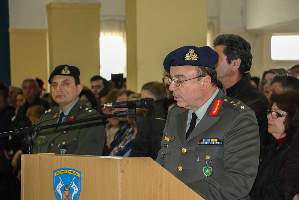 Την ημερήσια διαταγή διάβασε ο διοικητής του στρατοπέδου, συνταγματάρχης Δημήτρης Αρβανίτης.