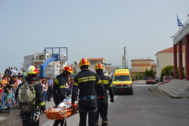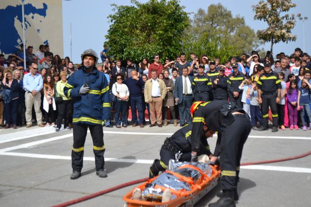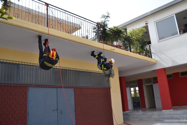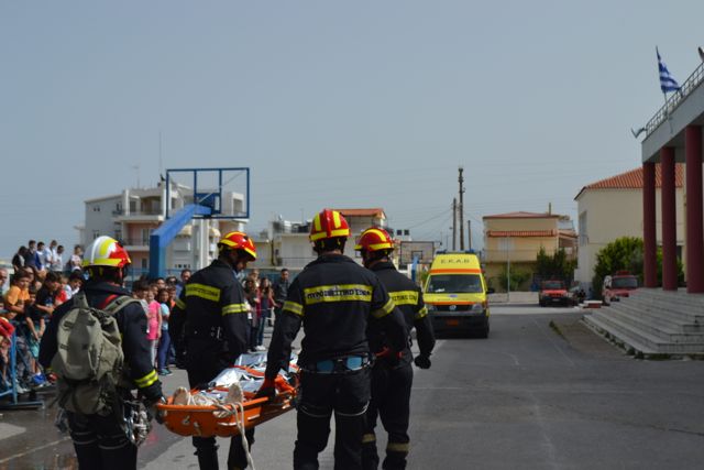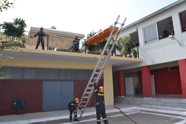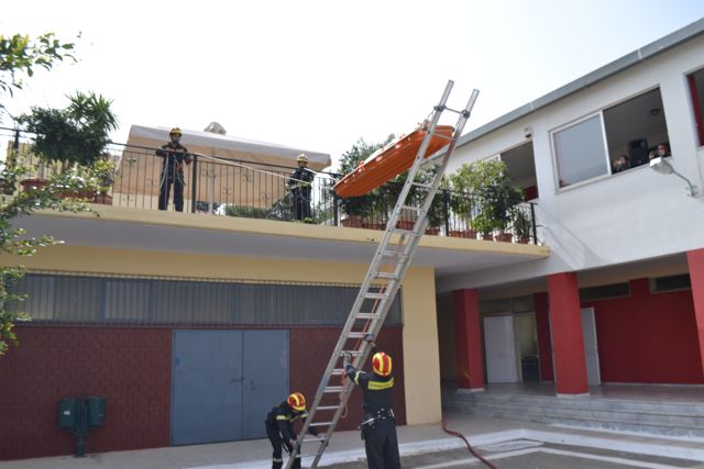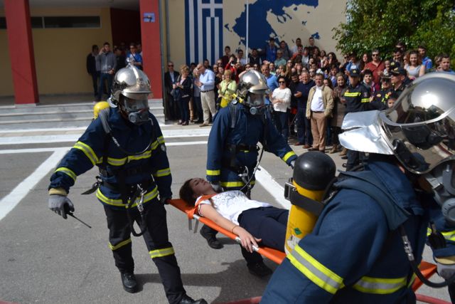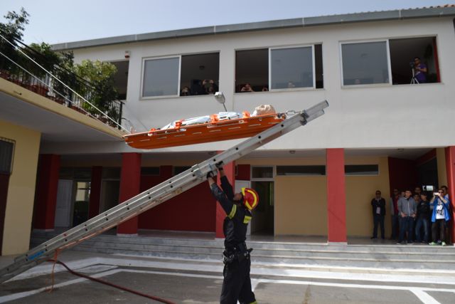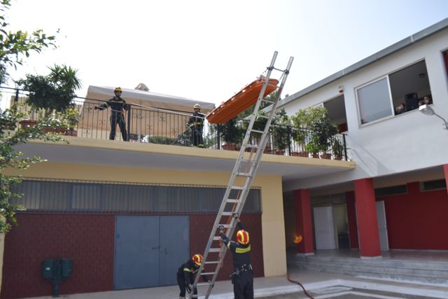 Ακόμη 5 παιδιά κατάφεραν να απεγκλωβίσουν οι πυροσβέστες από τις σκάλες του σχολείου. Ολα αυτά βέβαια τα προέβλεπε το σενάριο εντυπωσιακής άσκησης της Πυροσβεστικής Υπηρεσίας που πραγματοποιήθηκε στο χώρο του σχολείου από το Πυροσβεστικό Κλιμάκιο Κυπαρισσίας, όπου οι πυροσβέστες είχαν να αντιμετωπίσουν φωτιά στο χώρο του σχολείου μετά από σεισμό, εγκλωβισμό ατόμων μέσα στα γραφεία και τραυματίες από την πτώση τοίχων.