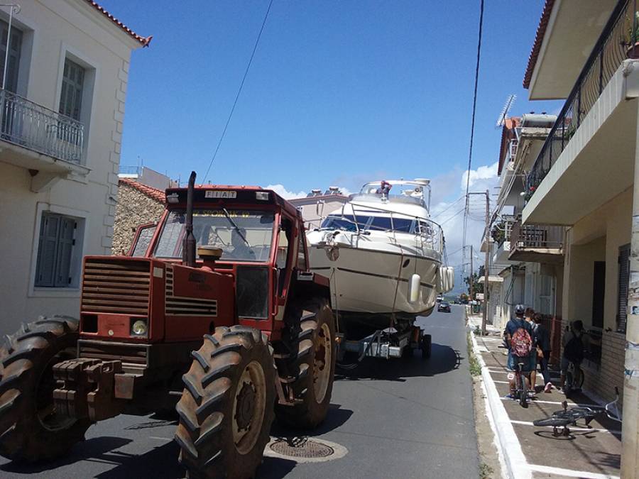 Η ανέλκυση έγινε από τον Μιχάλη Πούντο που διαθέτει καρνάγιο στην περιοχή, με ένα από τα πλέον σύγχρονα τρέιλερ, το οποίο διαθέτει εκπληκτικές δυνατότητες και αφού ρυμουλκήθηκε από τρακτέρ μεταφέρθηκε στο καρνάγιο. Η εικόνα ωστόσο στον παραλιακό δρόμο της πόλης ήταν εντυπωσιακή, καθώς το σκάφος ήταν ιδιαίτερα μεγάλου μεγέθους και στο πέρασμά του αρκετός κόσμος το παρατηρούσε και το φωτογράφιζε.