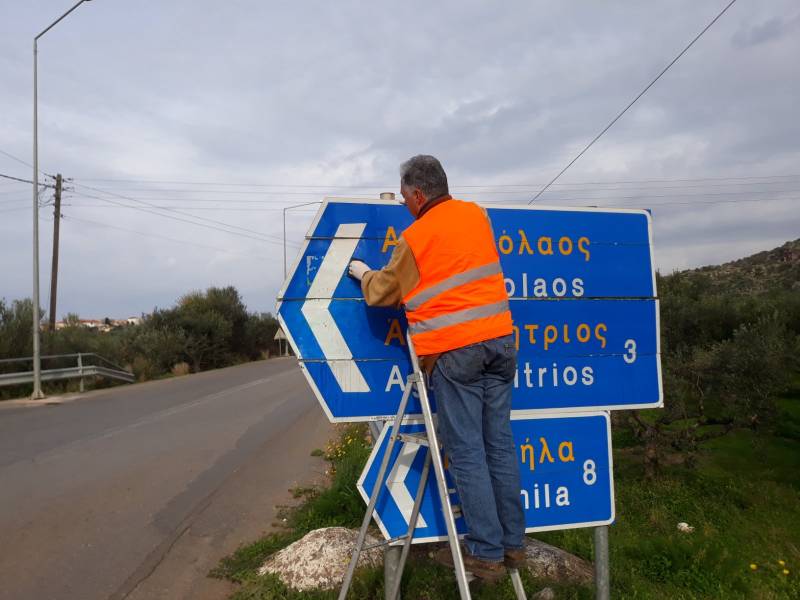 Καθαρισμός οδικών πινακίδων στη Μάνη