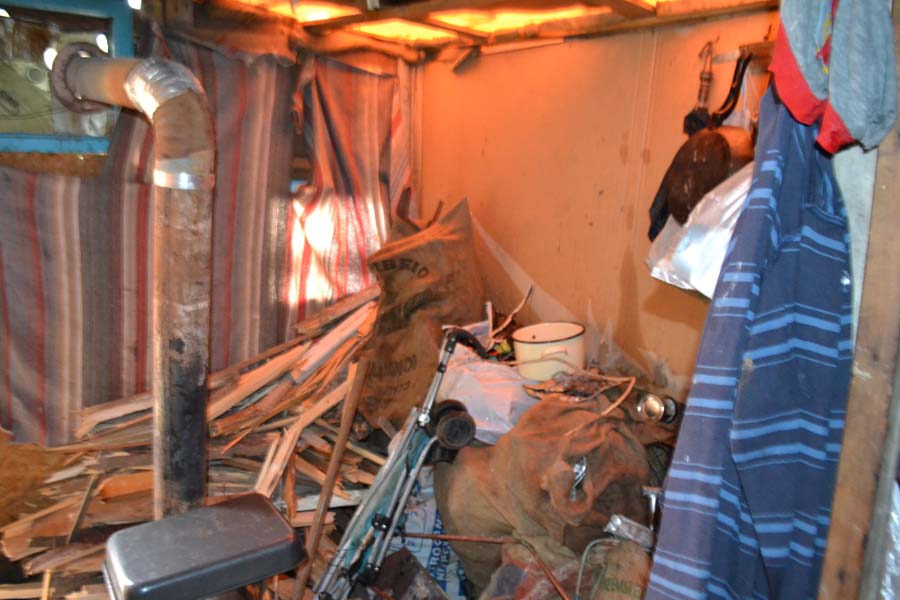 Από τους πιο …τυχερούς είναι ο Γιάννης, καθώς έχει εξασφαλίσει ένα οίκημα που υπάρχει στο χώρο και μένει εκεί. Μας δείχνει την ξύλινη πόρτα και μας λέει πως μόνο τους την έφτιαξε για να μην μπαίνει κρύο. Βρίσκεται στην περιοχή εδώ και 6 χρόνια και ζει κάτω από αυτές τις συνθήκες, ενώ ήρθε για να δουλέψει αλλά ξέμεινε εκεί.
