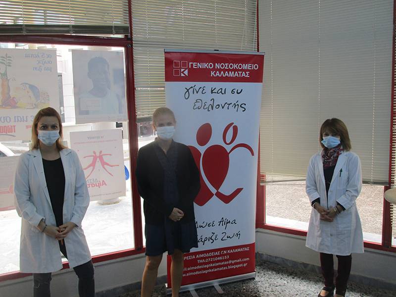 Επεσήμανε πως “είμαστε εδώ, τηρούμε τα μέτρα ασφαλείας και τους κανόνες. Θα ήθελα να καλέσω τον κόσμο να έρθει να δώσει αίμα. Είμαστε στο κέντρο της Καλαμάτας από το καλοκαίρι, στο ισόγειο του Πνευματικού Κέντρου με τηλέφωνο επικοινωνίας 27210 87902. Με το που μπει ο αιμοδότης μέσα, με θερμόμετρο βλέπουμε τη θερμοκρασία του”. Διαβεβαίωσε ότι “είμαστε με μάσκες, κρατάμε τις αποστάσεις και απολυμαίνουμε συχνά το χώρο, οπότε είναι ασφαλείς οι αιμοδότες μας. Δεν υπάρχει κανένας κίνδυνος μετάδοσης του ιού. Εχουμε ειδικές οδηγίες από τον ΕΟΔΥ, δεν υπάρχει περίπτωση διασποράς απ’ αυτό, δεν μεταδίδεται ο ιός έτσι. Τηρούμε όλα τα μέτρα ασφαλείας, για την επαφή του ενός αιμοδότη με τον άλλον. Με μάσκες και με όλα τα μέτρα δεν υπάρχει κίνδυνος για μετάδοση”.