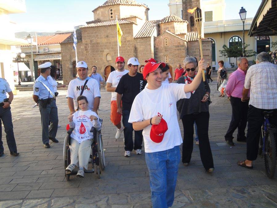 Οι πρώτοι λαμπαδηδρόμοι ήταν τα παιδιά που παρακολουθούν τα προγράμματα του Κέντρου Φυσικής και Ιατρικής Αποκατάστασης (ΚΕΦΙΑΠ, το πρώην ΚΕΚΥΚΑΜΕΑ) Καλαμάτας, που με χαρά μετέφεραν τη φλόγα στο Ιστορικό Κέντρο. Η φλόγα πέρασε από Λέικα, Ασπρόχωμα, Αντικάλαμο, Σπερχογεία και συνεχίζει προς Θουρία και Πήδημα και το βράδυ θα διανυκτερεύσει στα Αρφαρά, αφού το απόγευμα θα περάσει από τα ορεινά χωριά της Δημοτικής Ενότητας.