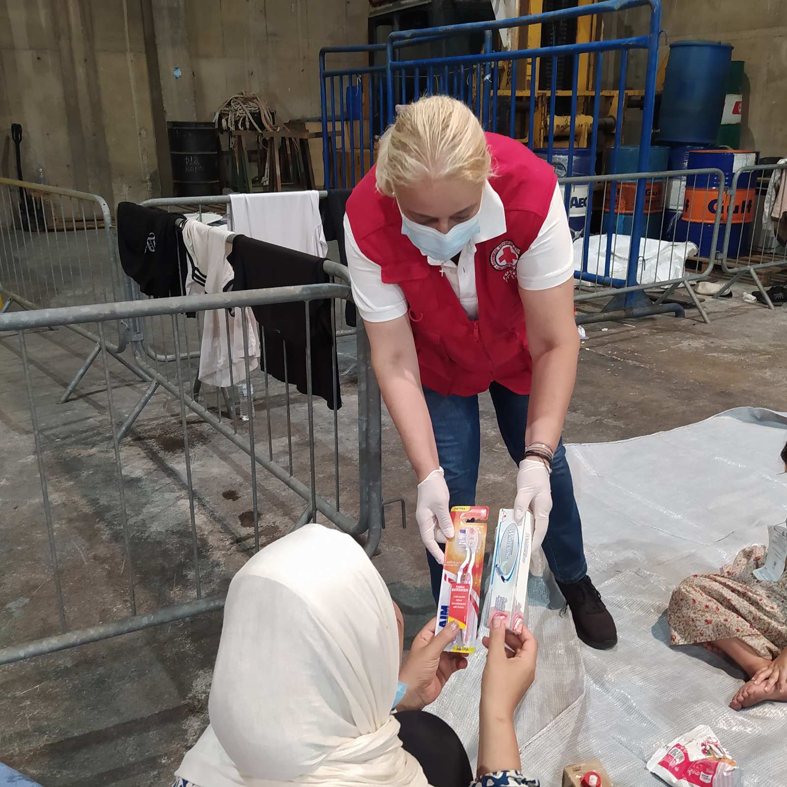 Οι ερυθροσταυρίτισσες, από την πρώτη στιγμή έδωσαν τις πρώτες βοήθειες μέσα στην τέντα που είχε στηθεί, αντιμετώπισαν λιποθυμίες και άλλες υγειονομικές ανάγκες -αλλά κυρίως φρόντισαν, όπως τόνισε μιλώντας στους δημοσιογράφους η νοσηλεύτρια του Ερυθρού Σταυρού Κατερίνα Τσατά, να νιώσουν άνδρες, γυναίκες και παιδιά ότι βρίσκονται σε έναν ασφαλή χώρο κι ότι μπορούν πια να ηρεμήσουν. “Είναι μέσα στο έργο του ΕΕΣ να ενδυναμώσουμε τους συνανθρώπους μας, αυτούς που ταλαιπωρούνται και βέβαια πάντα θα είμαστε κοντά τους, σε όλες τις αφίξεις προσφύγων - μεταναστών στο λιμάνι της Καλαμάτας”, ανέφερε η Κ. Τσατά.