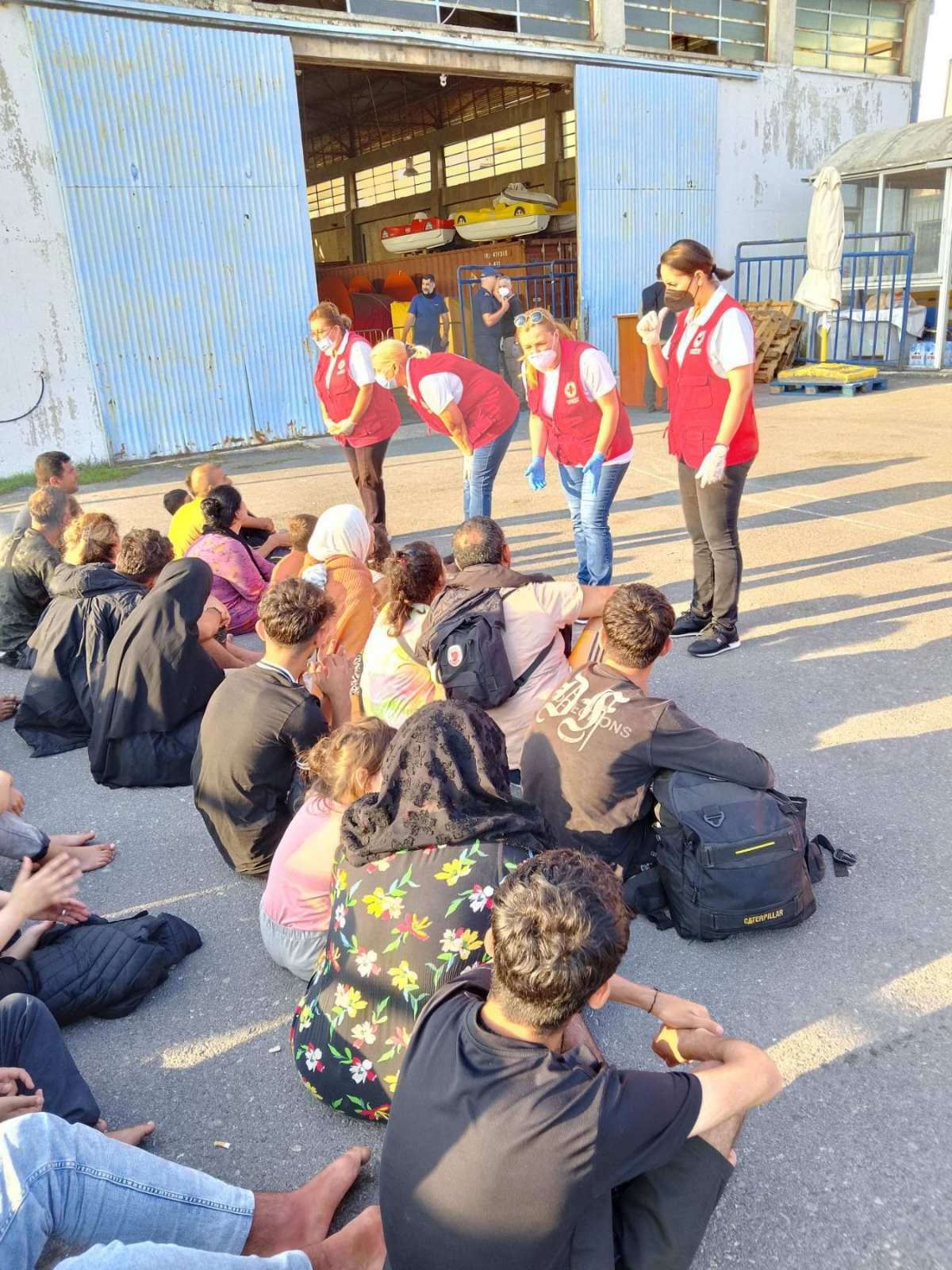 Εκεί, όλη η ομάδα του Περιφερειακού Τμήματος ΕΕΣ Καλαμάτας, νοσηλεύτριες και εθελόντριες, κινητοποιήθηκε ακόμα μία φορά για να υποδεχτεί τους 64 πρόσφυγες και μετανάστες στο λιμάνι, ανάμεσά τους 7 γυναίκες, 4 κορίτσια και 10 αγόρια, όλες κουρδικής καταγωγής από το Ιράκ, όπως και τα μικρά σε ηλικία αγόρια, και έφηβοι από το Ιράν.