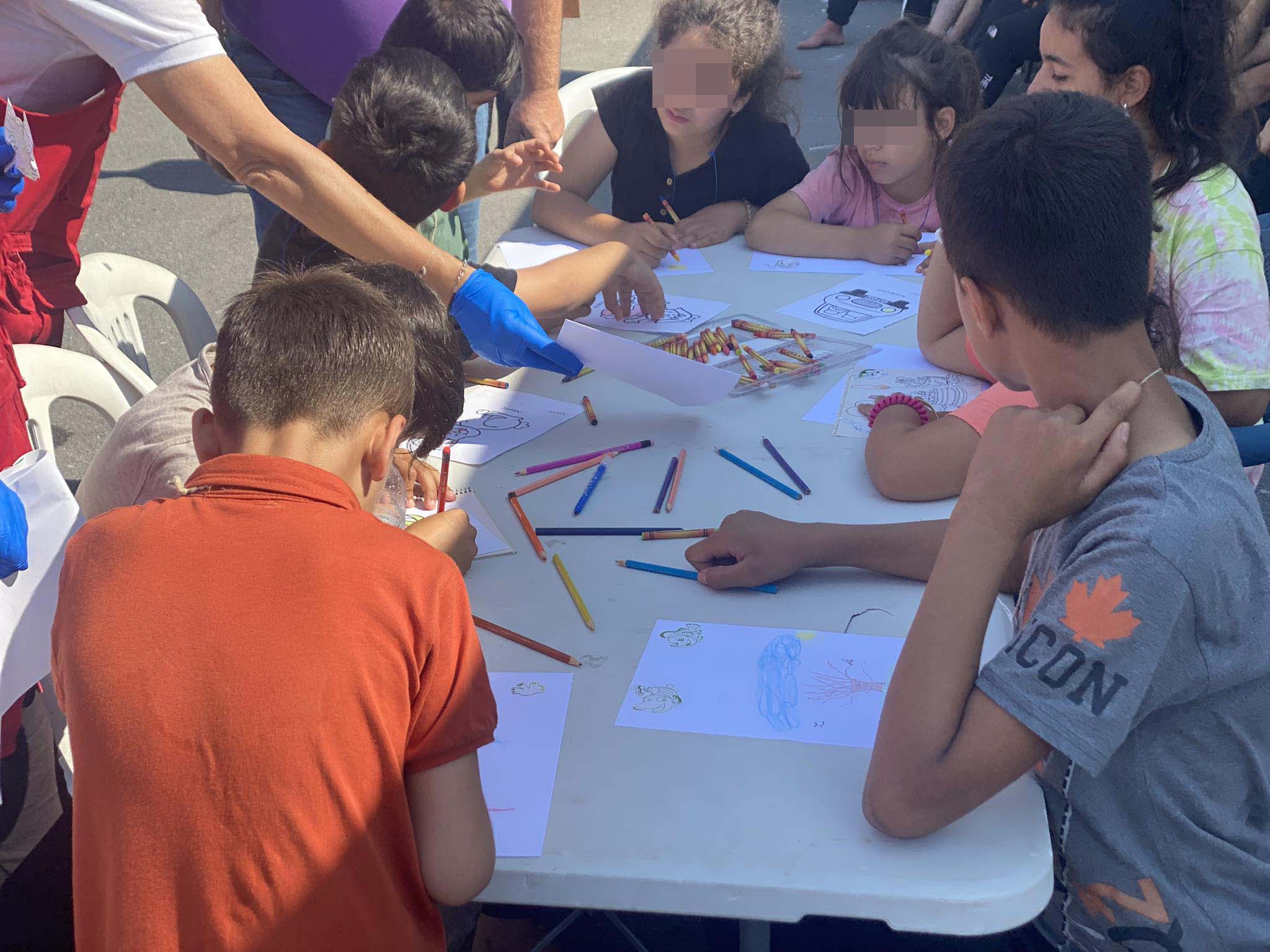Επίσης, οι εθελόντριες έπαιξαν παιχνίδια με τα παιδιά και τους μοίρασαν μπλοκ ζωγραφικής και μπογιές, γεμίζοντας δημιουργικά το χρόνο τους.