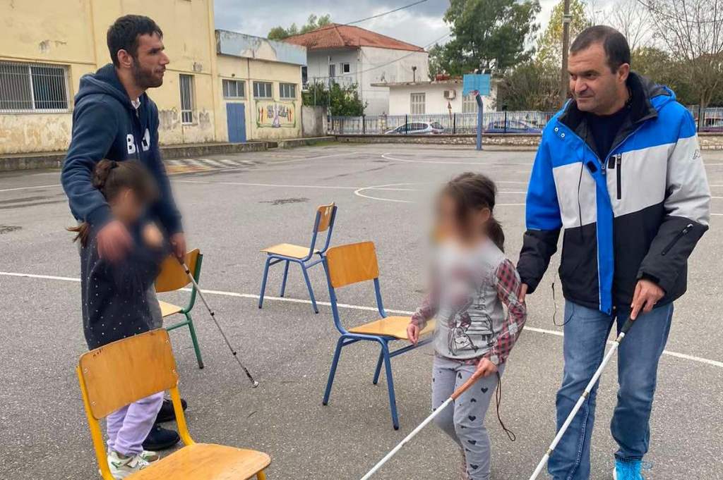 Στο πρακτικό μέρος η συμμετοχή των παιδιών ήταν σημαντική και αναγκαία, καθώς πραγματοποιήθηκε παρουσίαση του συστήματος γραφής των τυφλών Braille, ανάγνωση ανάγλυφων βιβλίων, αναγνώριση αντικειμένων μέσω αφής και όσφρησης, χρήση λευκού μπαστουνιού σε δρόμο με εμπόδια, συνοδεία/καθοδήγηση τυφλού αθλητή στο τρέξιμο και άλλα”.