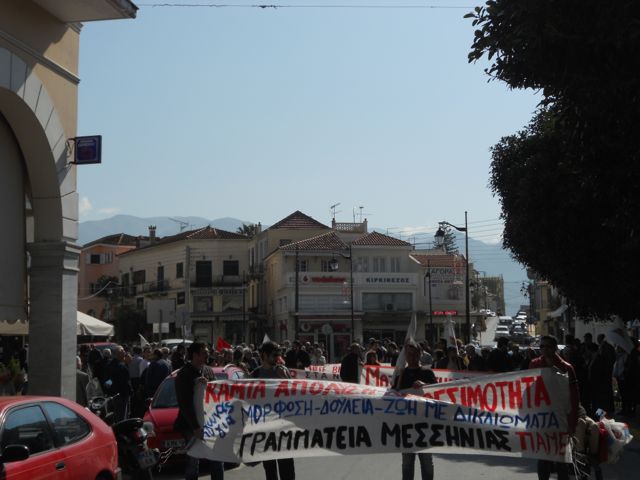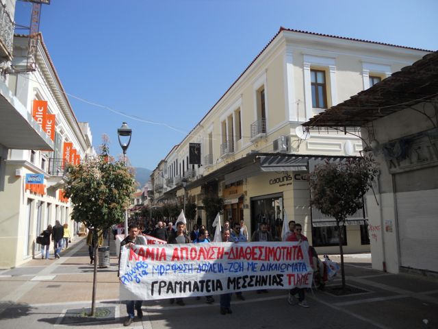 Ειρηνικά έκλεισε η απεργιακή πορεία που έκανε σήμερα το ΠΑΜΕ στην Καλαμάτα, με μεγάλη συμμετοχή συνδικάτων και εργαζόμενων.