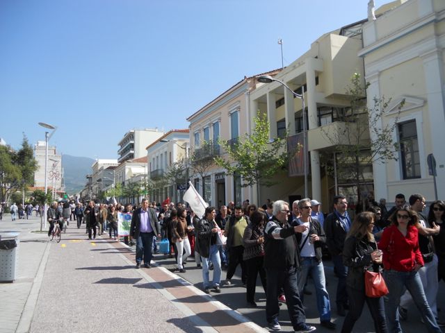Η πορεία ξεκίνησε από την πλατεία 23ης Μαρτίου και κατέληξε στο ΙΚΑ στη Φιλελλήνων, το οποίο σήμερα έμεινε κλειστό για το κοινό.