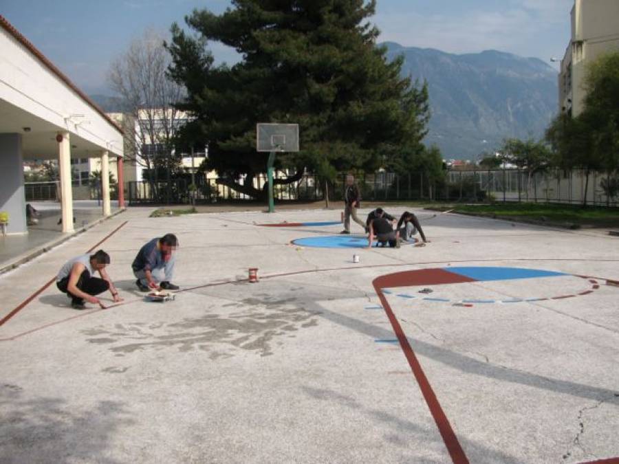 [*Η φωτογραφία είναι από τη διαγράμμιση των γηπέδων του 18ου Δημοτικού Καλαμάτας τον περασμένο Μάρτιο]