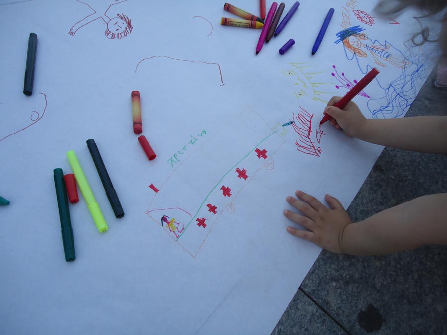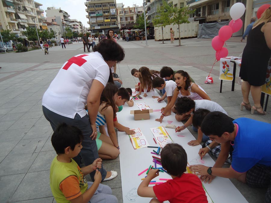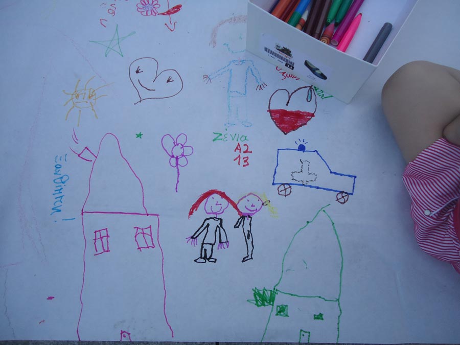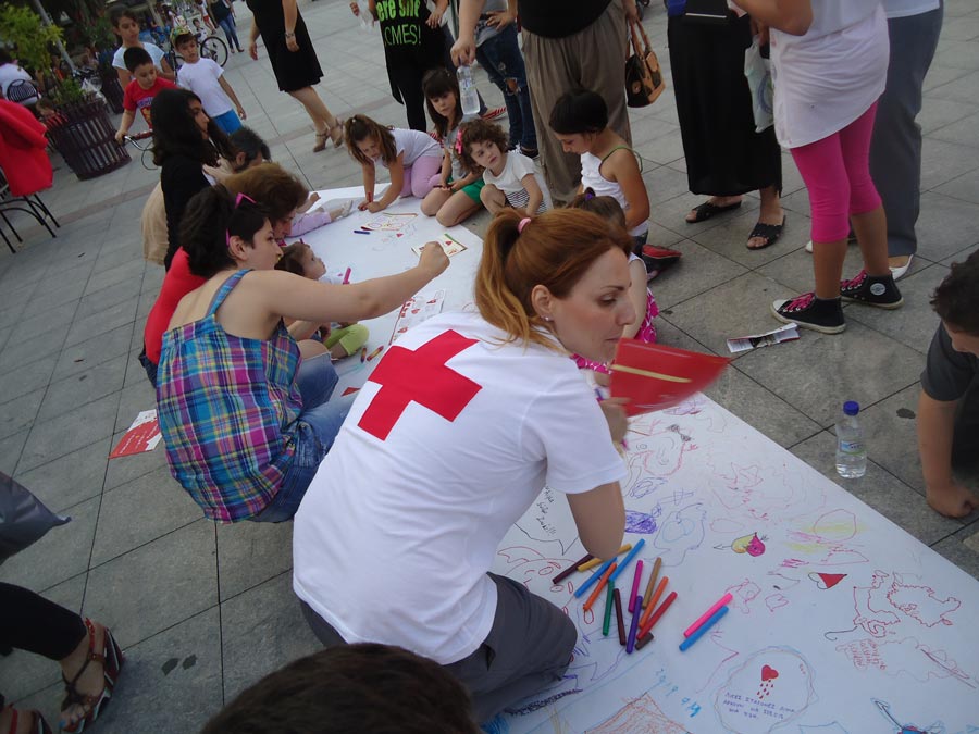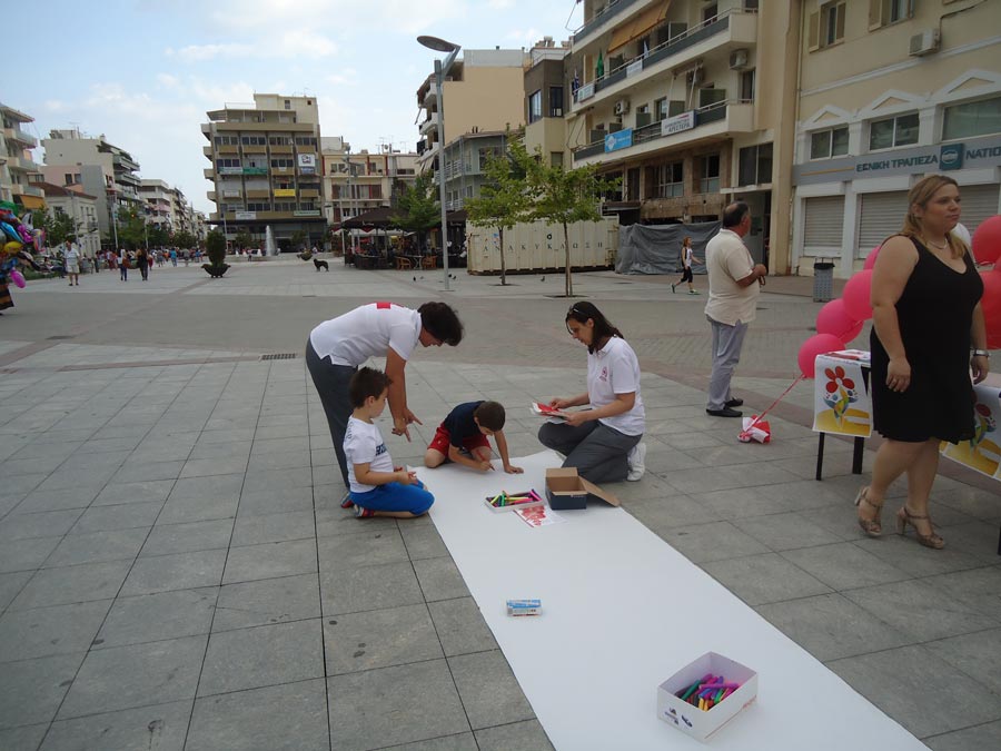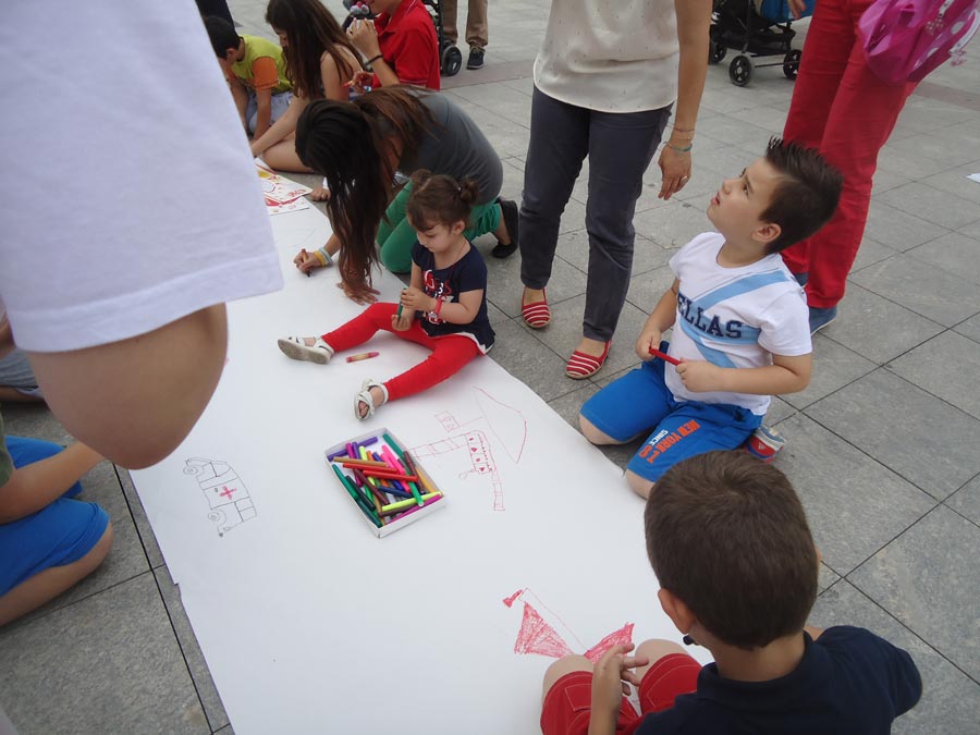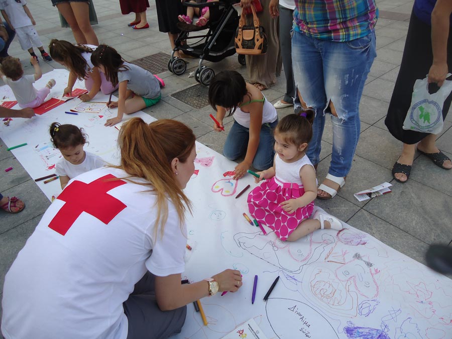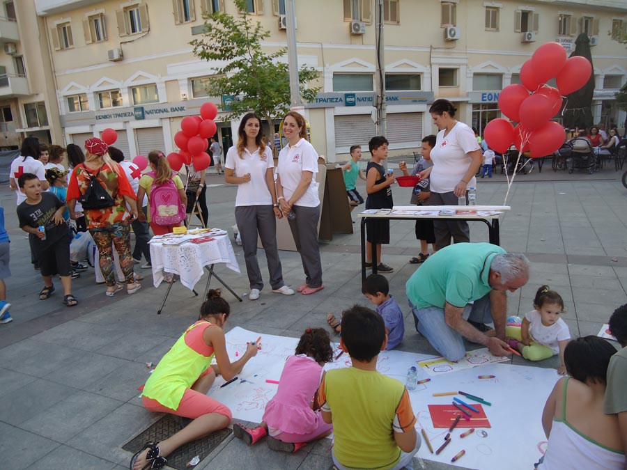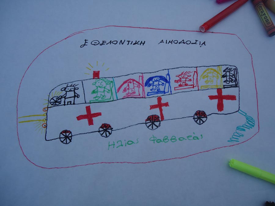 Την πρώτη μέρα στο χώρο που είχε στηθεί, παιδιά ζωγράφισαν και έστειλαν τα δικά τους μηνύματα για την προσφορά αίματος, την προσφορά ζωής.