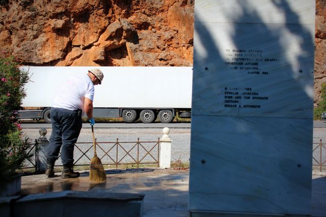 Μέλη του Συλλόγου «Ετοιμοκλής» και λίγοι πολίτες καθάρισαν όλο τον περιβάλλοντα χώρο, ευπρέπισαν το χώρο του μνημείου, φρεσκάρισαν την πινακίδα που καλεί όσους σταθμεύουν «να σεβαστούν την ιερότητα του χώρου» και ολοκλήρωσαν τη δράση με τη φύτευση δυο μικρών κυπαρισσιών και τη κατάθεση στεφάνου.
