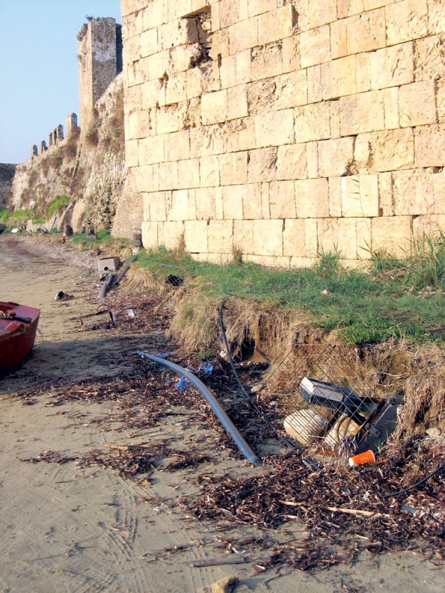 Επισημαίνει, ωστόσο, ο κ. Τσιρίγος ότι «και το έργο του φωτισμού δεν θα μπορούσε φυσικά να ξεφύγει, αφενός από την προχειρότητα με την οποία κατασκευάζονται τα περισσότερα έργα στη χώρα μας και, αφετέρου, από την έλλειψη κάθε πρόνοιας συντήρησης, ώστε να διατηρούνται λειτουργικά συνεχώς». Και προσθέτει: «Σαν αποτέλεσμα των παραπάνω παρατηρούμε μία σταδιακή "κατάρρευση" του φωτισμού του μνημείου, κυρίως από τις φθορές στην ανατολική πλευρά του Κάστρου, λόγω των καιρικών συνθηκών (αστοχία της μελέτης σε ό,τι αφορά τη θέση των φωτιστικών σωμάτων και την προστασία τους από τη θάλασσα), αλλά και λόγω της ανυπαρξίας ενός στοιχειώδους καθαρισμού σε πολλά σημεία, με αποτέλεσμα πολλά φωτιστικά σώματα να καλύπτονται από τα χορτάρια. Ετσι το περασμένο καλοκαίρι, μόλις 6 χρόνια μετά την ολοκλήρωση του έργου, φτάσαμε στο σημείο να είναι τελείως σκοτεινά εκτεταμένα τμήματα των τειχών και το μπούρτζι να έχει πολύ μειωμένο φωτισμό. Επιπλέον στο ανατολικό τμήμα, όπου σε ορισμένα σημεία δεν υπάρχει καθόλου φωτισμός, τοποθετήθηκαν για λόγους ασφαλείας δύο προβολείς οι οποίοι φωτίζουν προς τη θάλασσα και σκιάζουν το κάστρο! Οι φετινές θαλασσοταραχές αποτελείωσαν το δίκτυο φωτισμού της ανατολικής πλευράς».