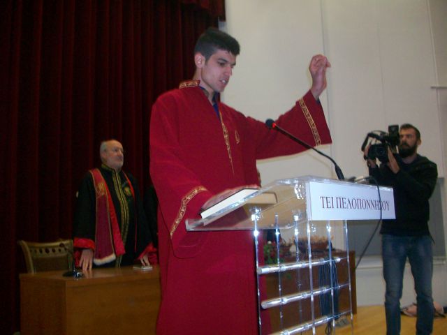 Τον όρκο διάβασε ο Αναστάσιος Θεοφανόπουλος, ενώ σύντομους χαιρετισμούς απηύθυναν ο πρύτανης του ΤΕΙ Δημήτρης Βελισσαρίου, ο διευθυντής της Σχολής Γεώργιος Σταθάς, ο πρόεδρος του Τμήματος Τεχνολόγων Γεωπόνων Επαμεινώνδας Κάρτσωνας και ο πρόεδρος του Τμήματος Τεχνολογίας Τροφίμων Γεώργιος Ζακυνθινός.