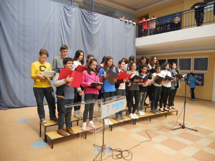 Η Χορωδία των Εκπαιδευτηρίων Μπουγά ερμήνευσε γνωστά τραγούδια για τους παρευρισκόμενους Ιταλούς μαθητές.