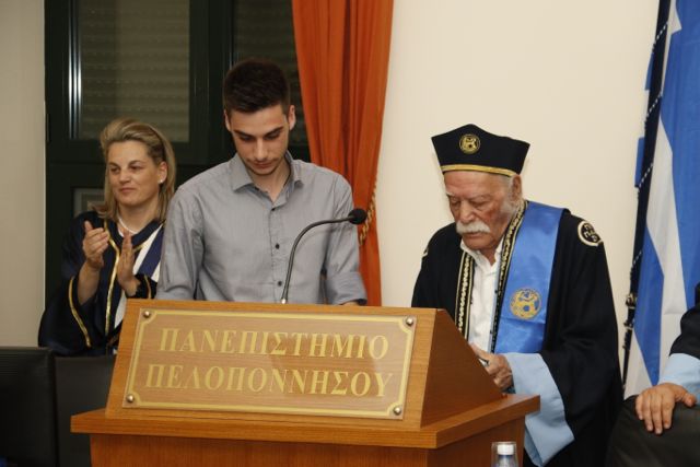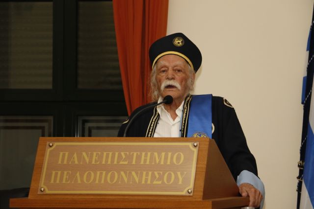 Με τα λόγια αυτά ο Μανώλης Γλέζος αποδέχτηκε χθες, στο ασφυκτικά γεμάτο αμφιθέατρο «Ν. Πολίτης» στην Καλαμάτα, την αναγόρευσή του σε επίτιμο διδάκτορα του Τμήματος Ιστορίας, Αρχαιολογίας και Διαχείρισης Πολιτισμικών Αγαθών του Πανεπιστημίου Πελοποννήσου.