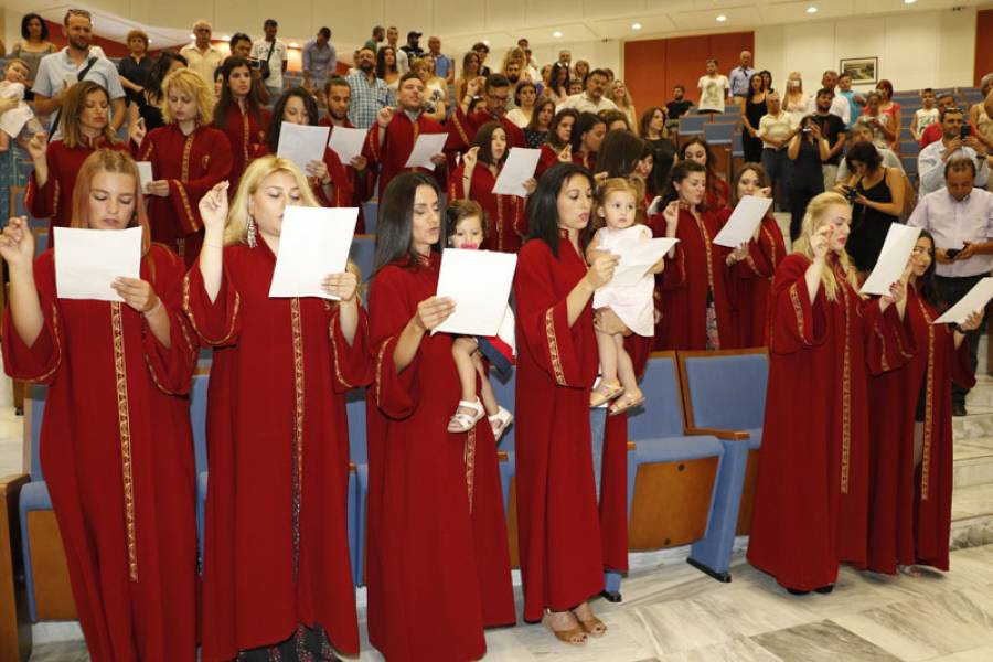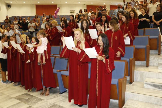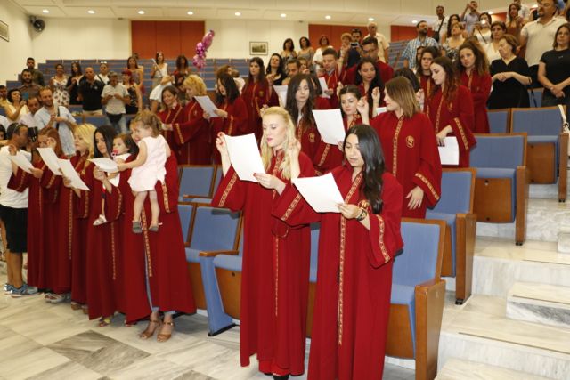 Ακολούθησε η ανάγνωση του όρκου από την αριστεύσασα του τμήματος Βασιλική Μπίκα και στη συνέχεια ο Δ. Πετρόπουλος επέδωσε τα πτυχία στους αποφοίτους. Συγκεκριμένα, στη χθεσινή τελετή, παρέλαβαν τα πτυχία τους οι Αγγελική Αγγελοπούλου, Αναστασία Βαβούλη, Κεσιάνα Βάκο, Ελευθερία Γκούγκλια, Φωτεινή Δεληγιάννη, Αντιόλα Ζέκα, Παναγιώτης Ιωάννου, Νίκη Καρτελιά, Πολυτίμη Κατσάνου, Χρήστος - Ανδρέας Κόρρος, Δήμητρα Κουτσογιάννη, Σοφία Κόχιλα, Ασημίνα Κωστοπούλου, Νικολέττα - Μαρία Λυκουρέντζου, Βασιλική Μπίκα, Σοφία Μπομπόνη, Γεωργία - Μαρία Μωραγιάννη, Ιωάννα Παπουτσή, Σωτηρία Σόντη, Μαρία Στεφανάκη, Αρτεμις Τζερτζεμέλη, Στεφανία Τσιχλάκη και Ευγενία Χαρίτου.