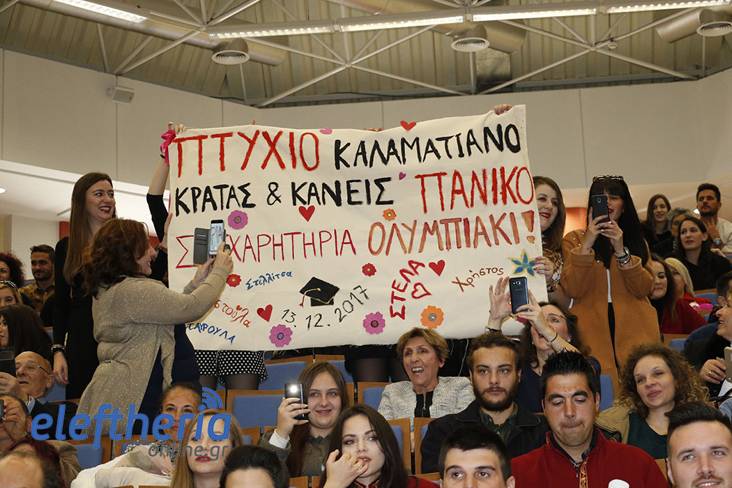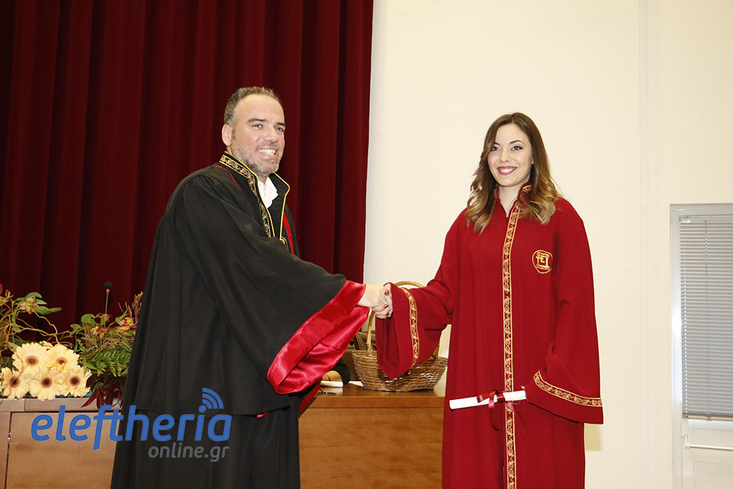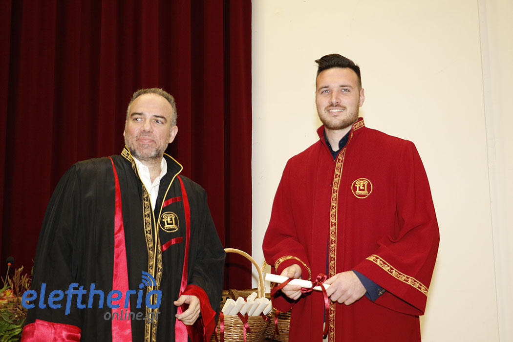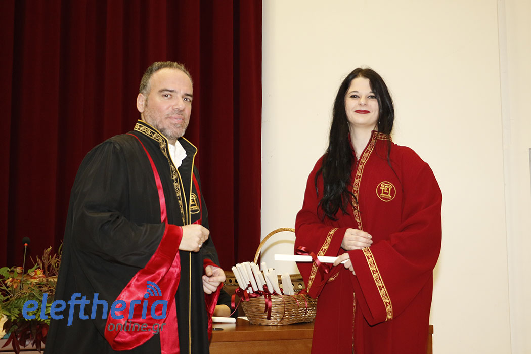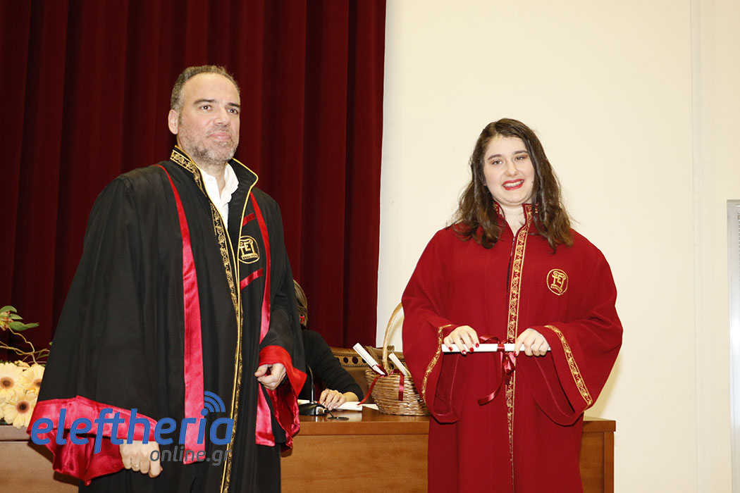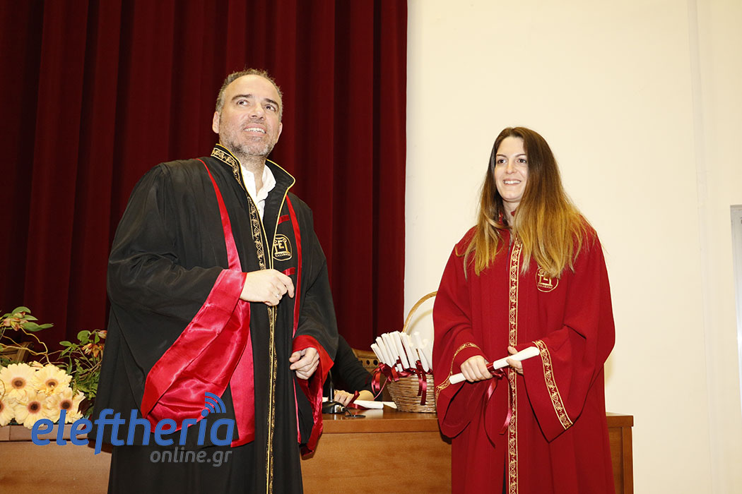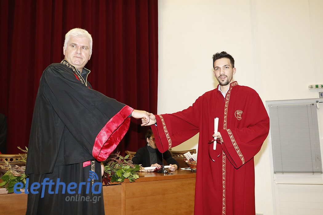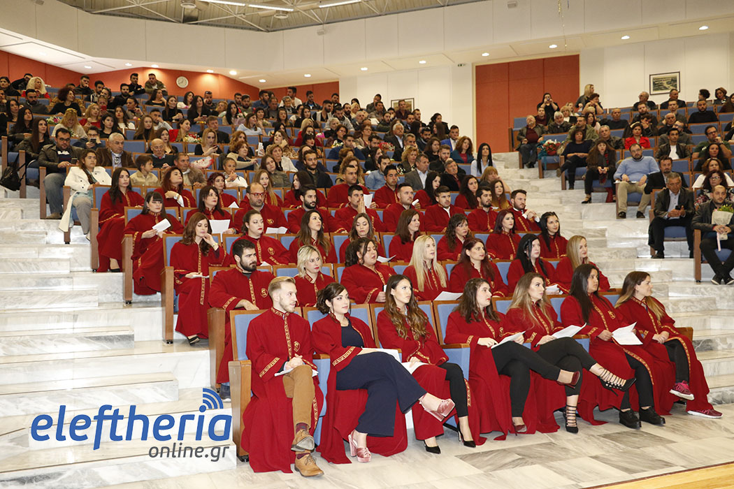 Πρώτοι ορκίστηκαν οι απόφοιτοι του Τμήματος Λογιστικής και Χρηματοοικονομικής και αργότερα οι απόφοιτοι από τα Τμήματα Διοίκησης Μονάδων Υγείας και Πρόνοιας (Δ.Μ.Υ.Π.) και Τοπικής Αυτοδιοίκησης (Τ.Α.). Χαιρετισμούς και ευχές στους πτυχιούχους απηύθυναν ο αντιπρύτανης Ευστράτιος Γεωργόπουλος, ο πρόεδρος του Τμήματος Χρηματοοικονομικής Οδυσσέας Σπηλιόπουλος, ο αναπληρωτής καθηγητής Ηλίας Μακρής και ο πρόεδρος του Τμήματος Διοίκησης Δημήτρης Σωτηρόπουλος. Τους όρκους στις δύο τελετές διάβασαν η Κωνσταντίνα Πολίτογλου και ο Εμίλιαν Τσέτσι.