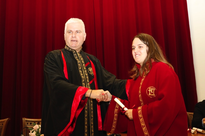 Ο πρύτανης του ΤΕΙ Ιωάννης Καπόλος ευχήθηκε στους πτυχιούχους “να εκπληρώσετε τους στόχους και τα όνειρά σας” και τους συμβούλευσε να μην αποκόψουν τον ομφάλιο λώρο από το ίδρυμα, αλλά να ενημερώνονται από το Γραφείο Διασύνδεσης. Τους προέτρεψε, μάλιστα, να συνεχίσουν τις σπουδές τους στα μεταπτυχιακά προγράμματα του τμήματός τους.