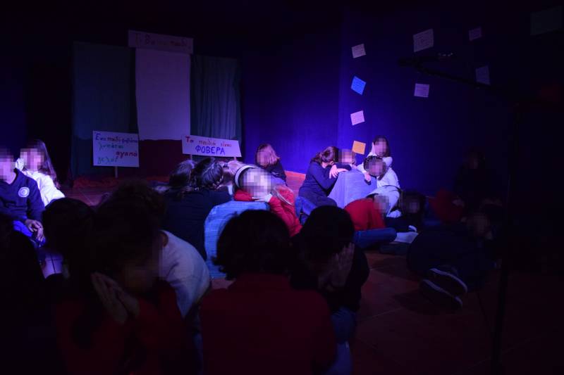 Οι μικροί μαθητές της Β’ Δημοτικού και οι μαθητές της ομάδας Λογοτεχνίας καθήλωσαν το κοινό, με απλές αφοπλιστικές ερωτήσεις για σπουδαία ζητήματα - θυμίζοντας στους μεγάλους ότι τα παιδιά είναι μικρά πλάσματα με μεγάλα όνειρα, υπαρξιακές απορίες και πλούσια συναισθήματα, όπως χαρακτηριστικά τόνισε η εμψυχώτρια της ομάδας Λογοτεχνίας, Χριστίνα Δίμιζα, που σκηνοθέτησε την εκδήλωση.