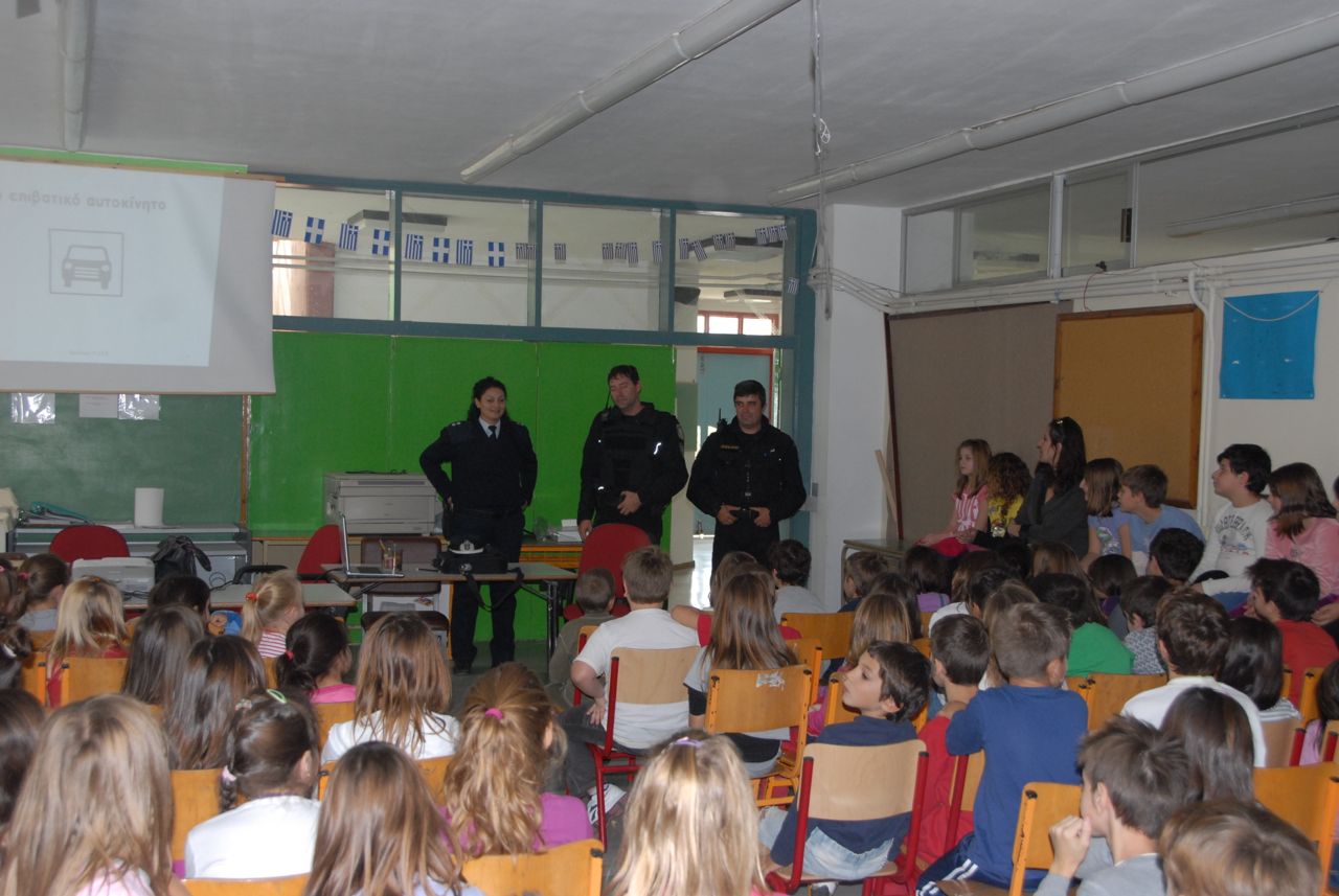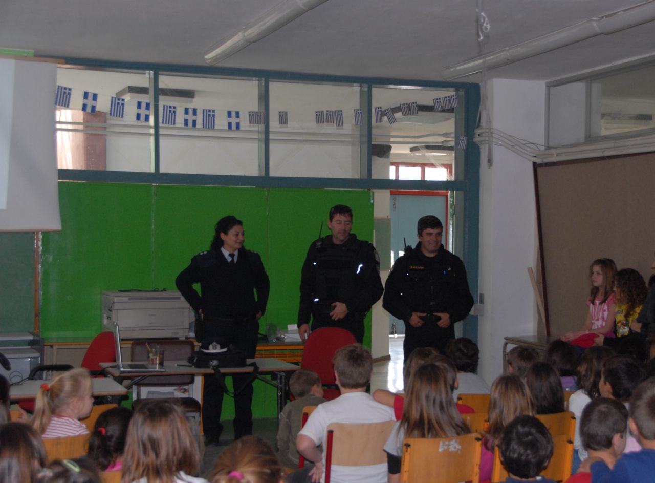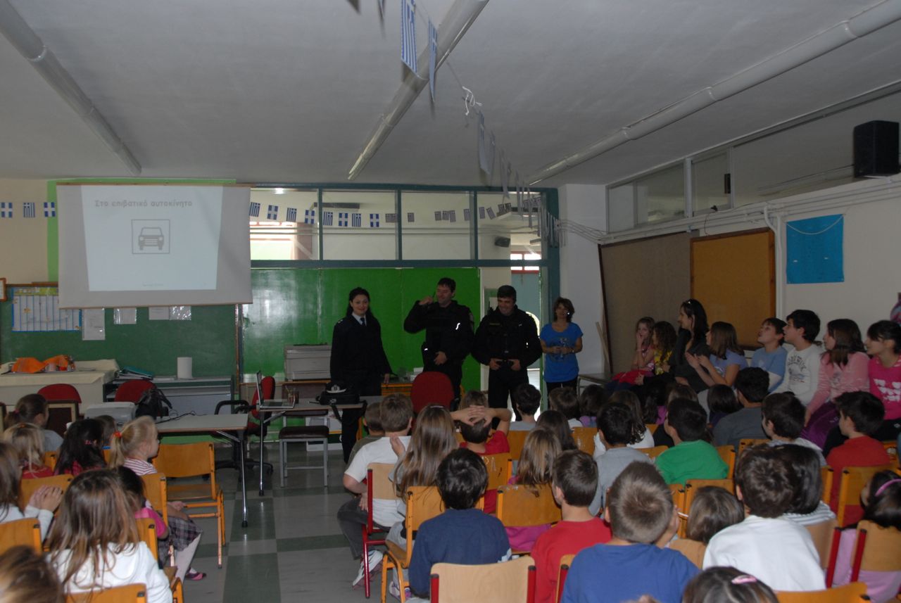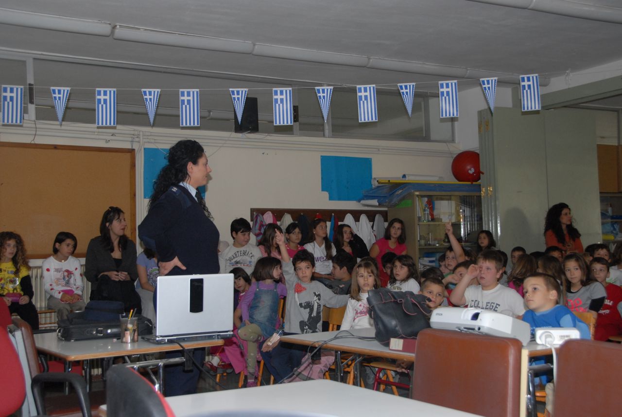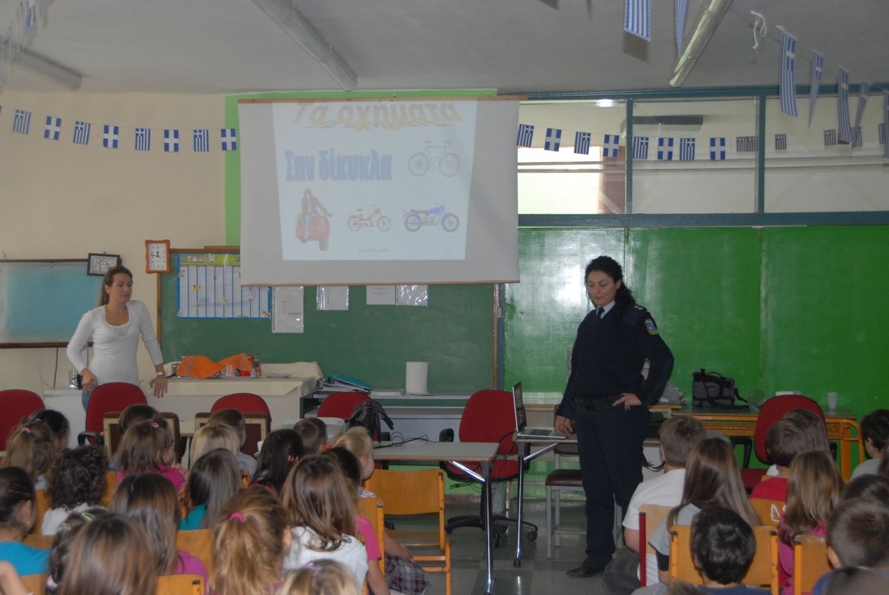 Η κ. Βιολντζή μίλησε στους μαθητές, παρουσίασε φωτογραφίες και διαφάνειες με σκοπό να τους ευαισθητοποιήσει και να τους παροτρύνει να έχουν σωστή συμπεριφορά όταν βρίσκονται στο δρόμο.