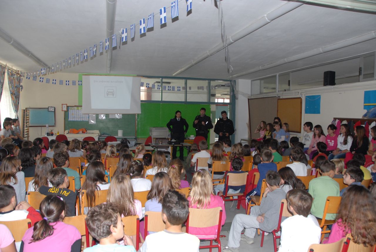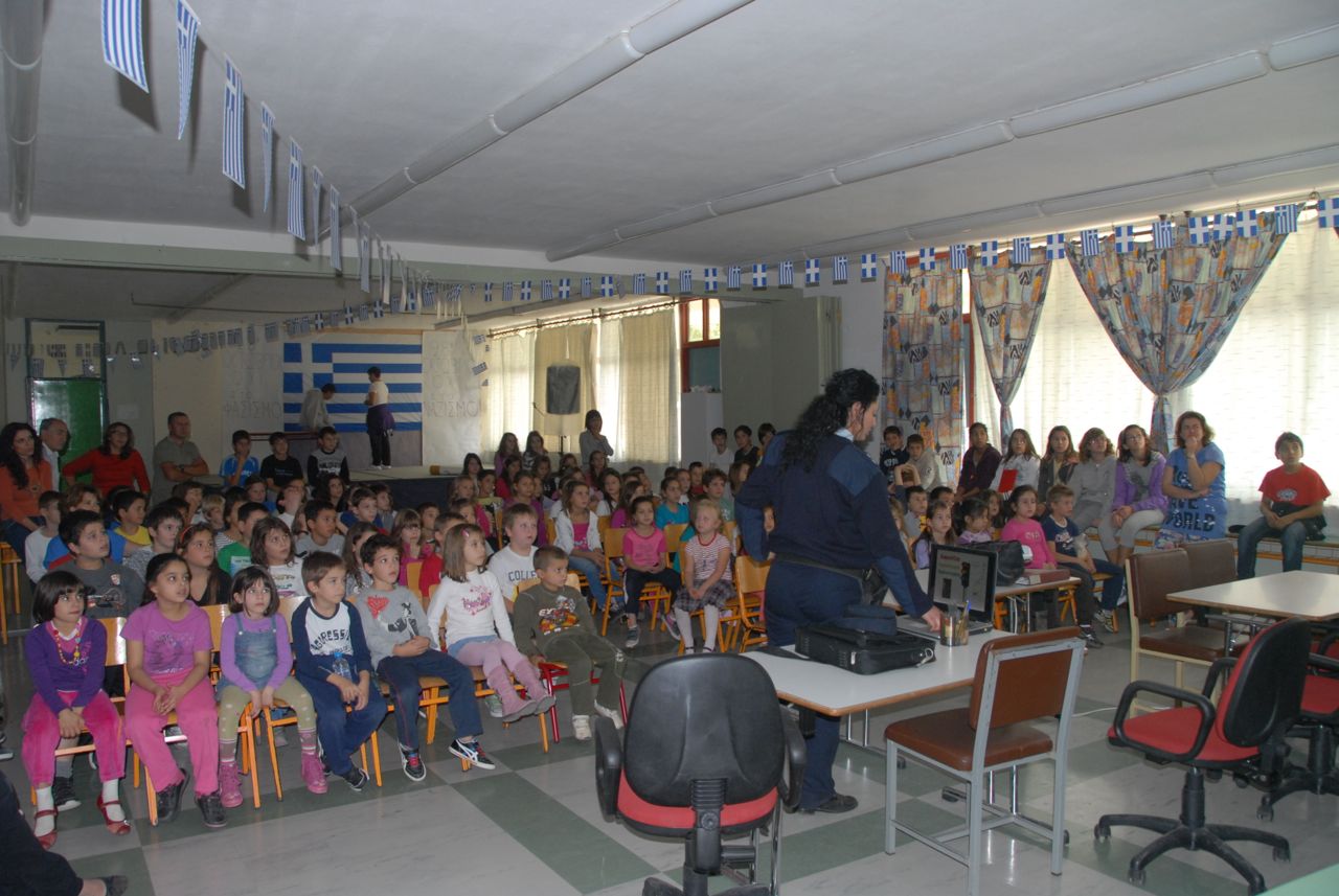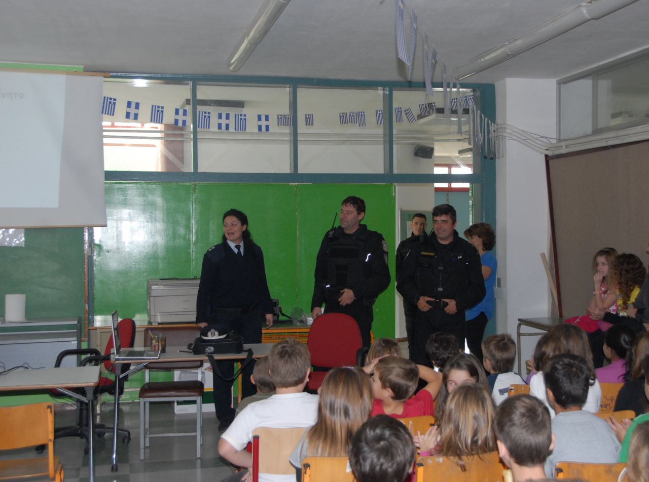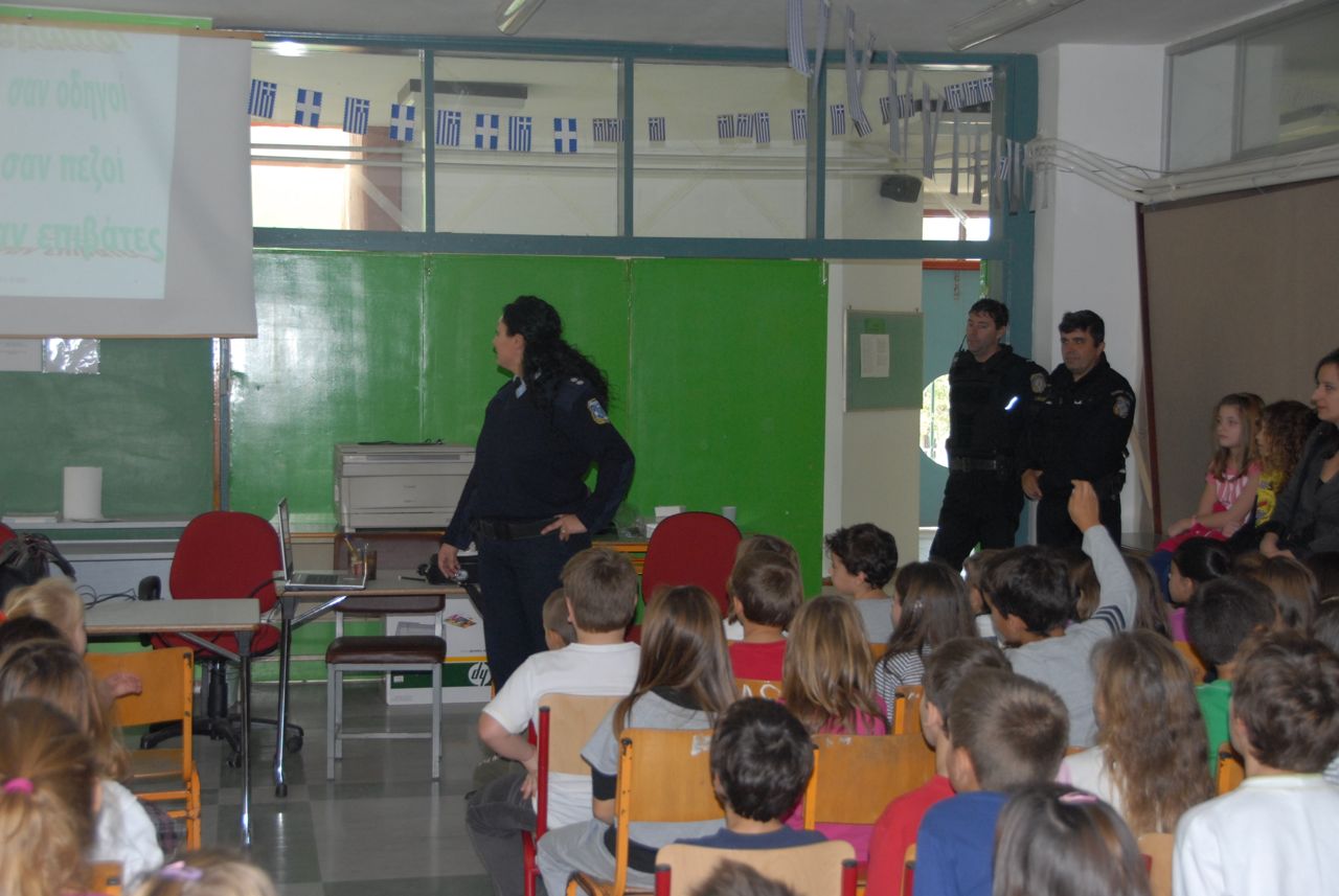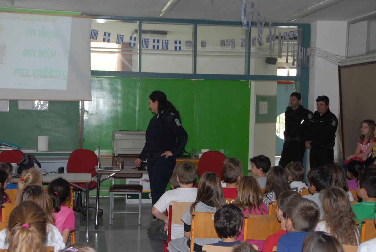 Η κ. Βιολντζή μίλησε στους μαθητές, παρουσίασε φωτογραφίες και διαφάνειες με σκοπό να τους ευαισθητοποιήσει και να τους παροτρύνει να έχουν σωστή συμπεριφορά όταν βρίσκονται στο δρόμο.