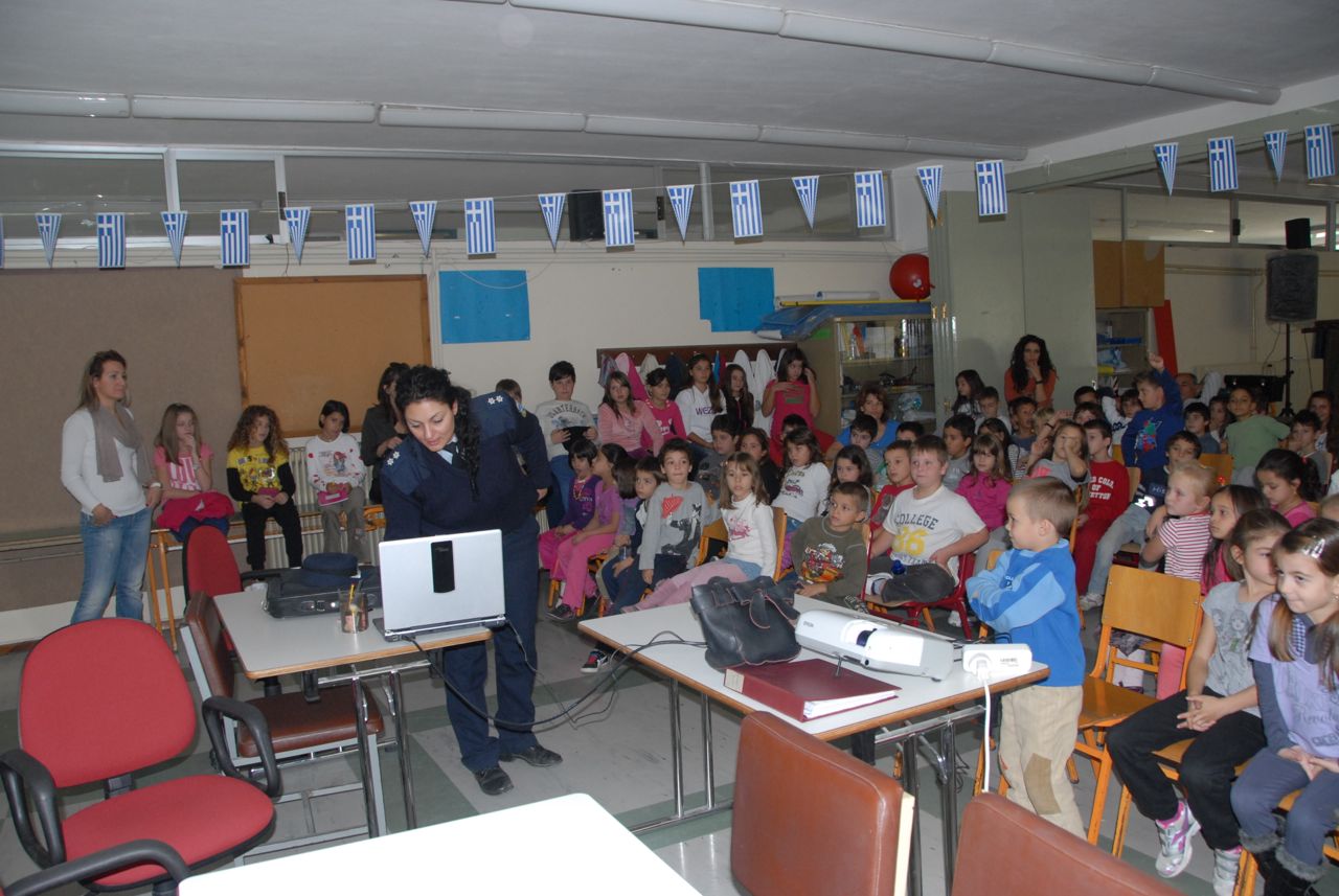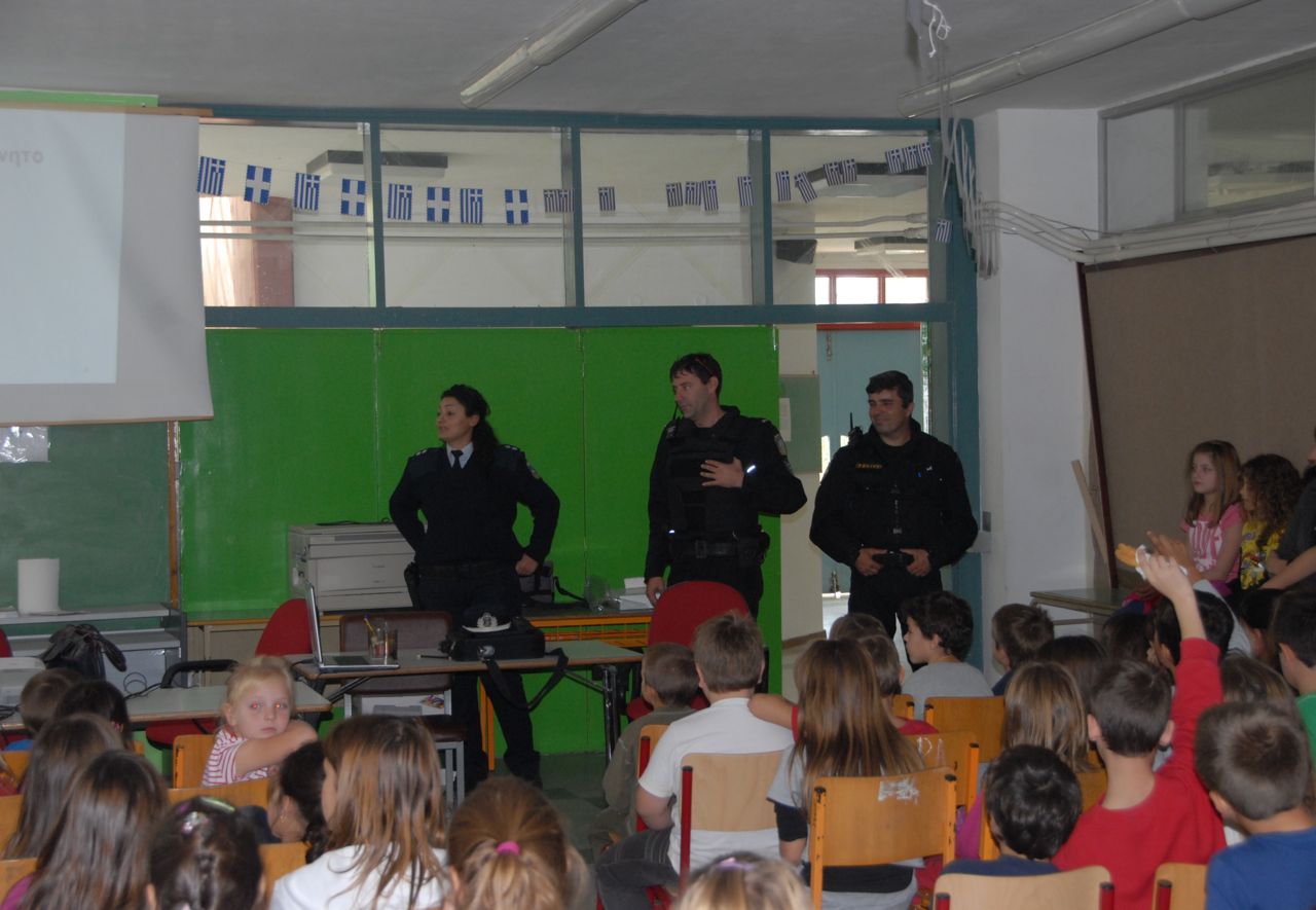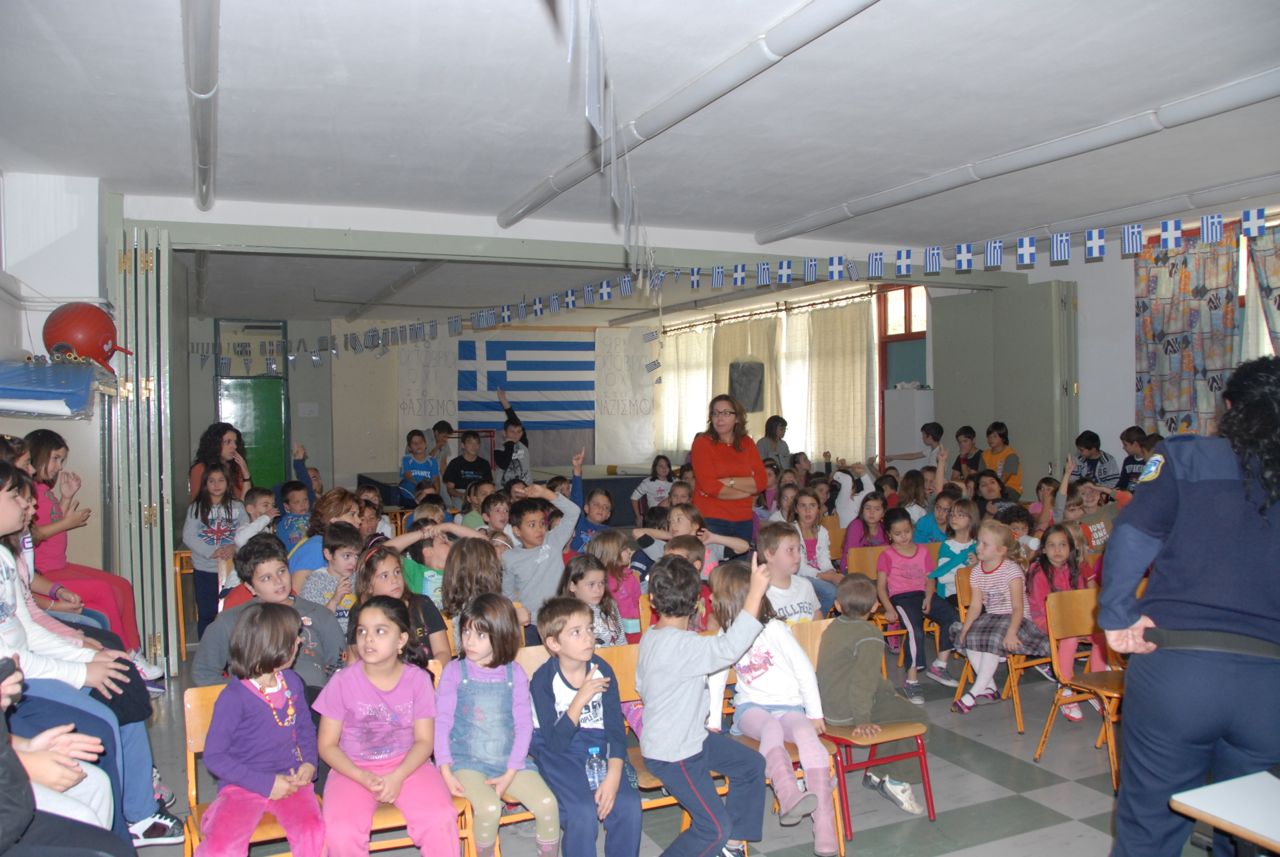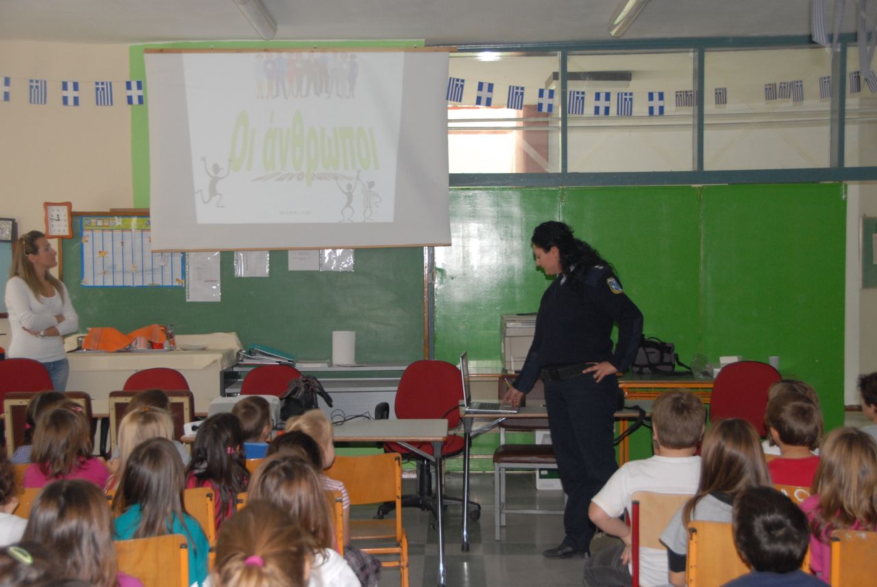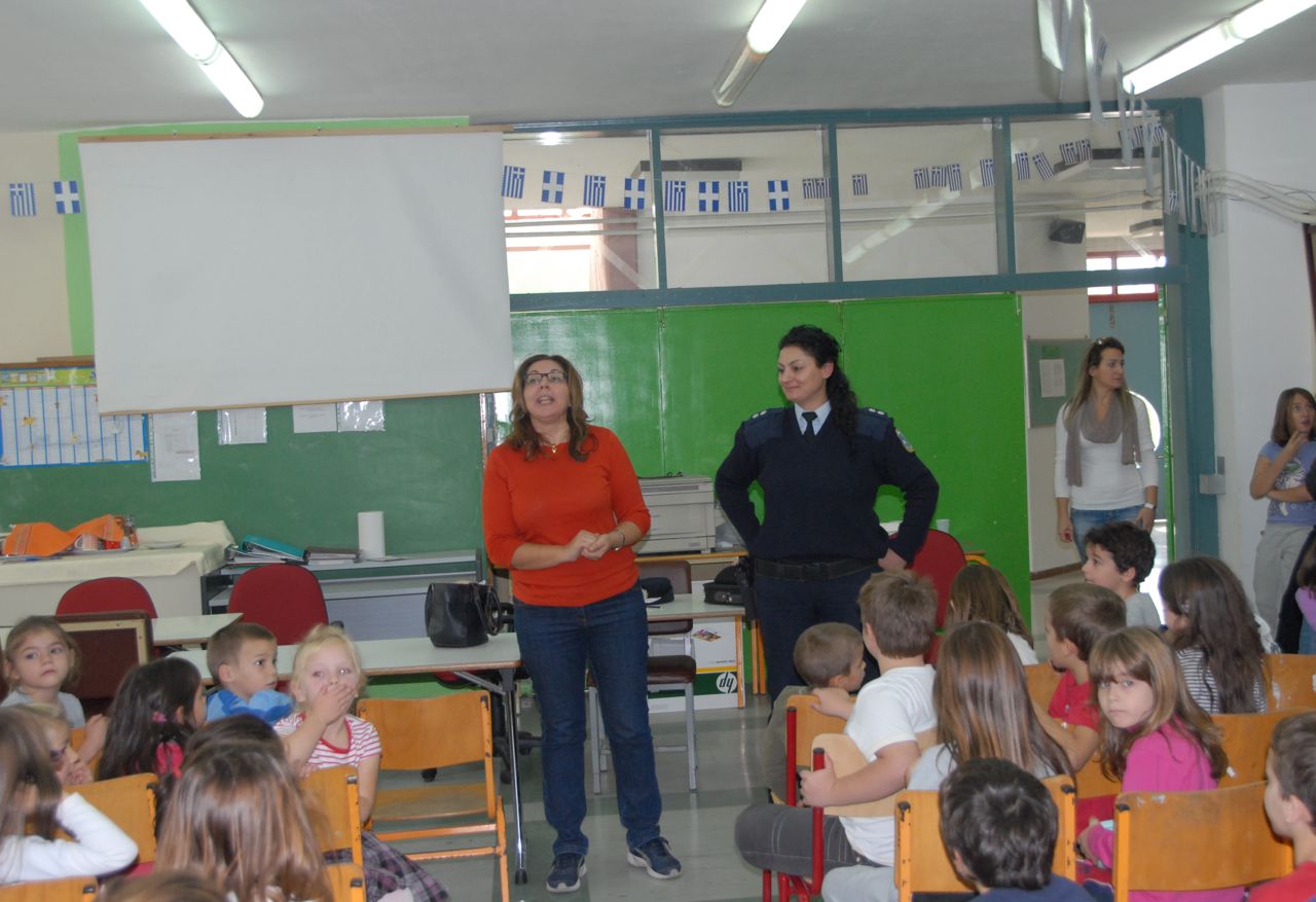 Η κ. Βιολντζή μίλησε στους μαθητές, παρουσίασε φωτογραφίες και διαφάνειες με σκοπό να τους ευαισθητοποιήσει και να τους παροτρύνει να έχουν σωστή συμπεριφορά όταν βρίσκονται στο δρόμο.