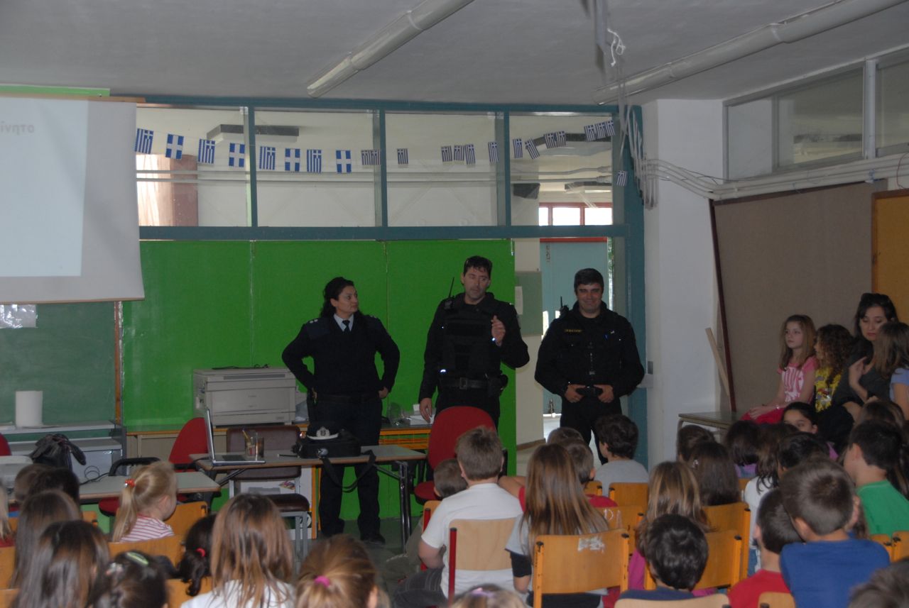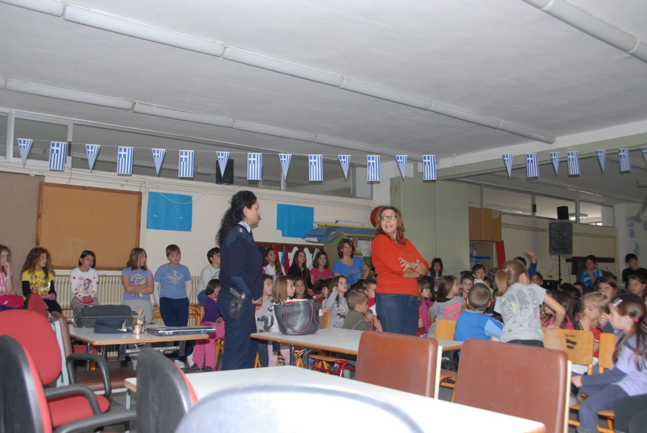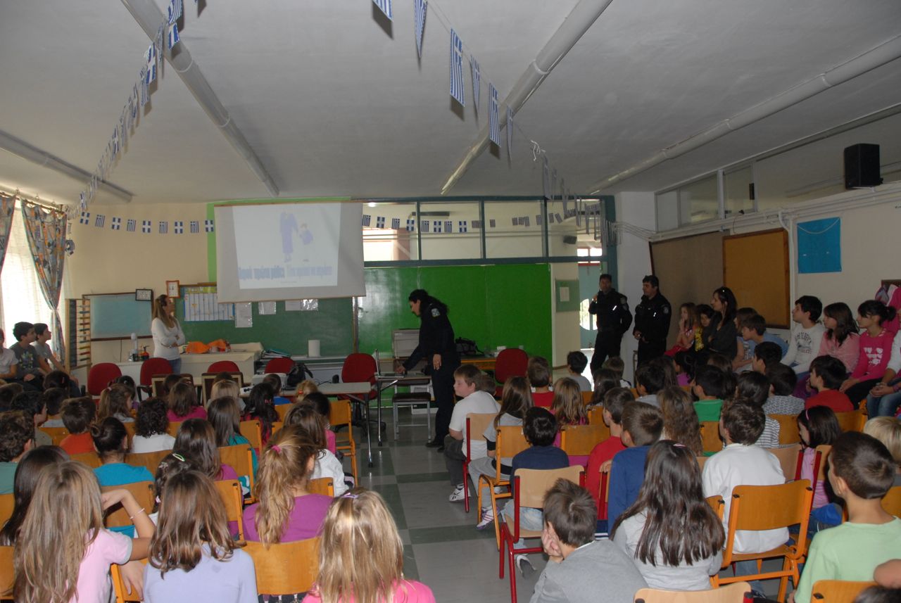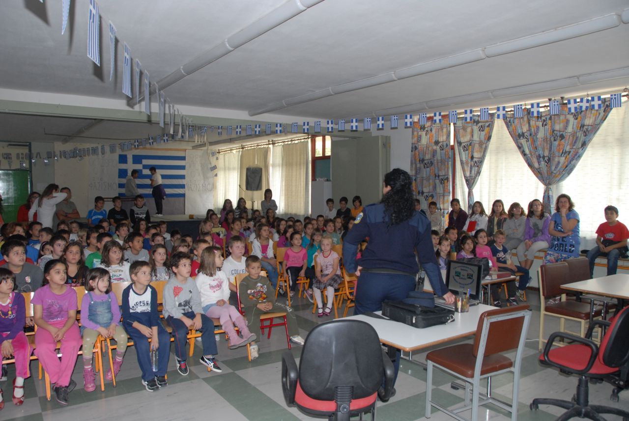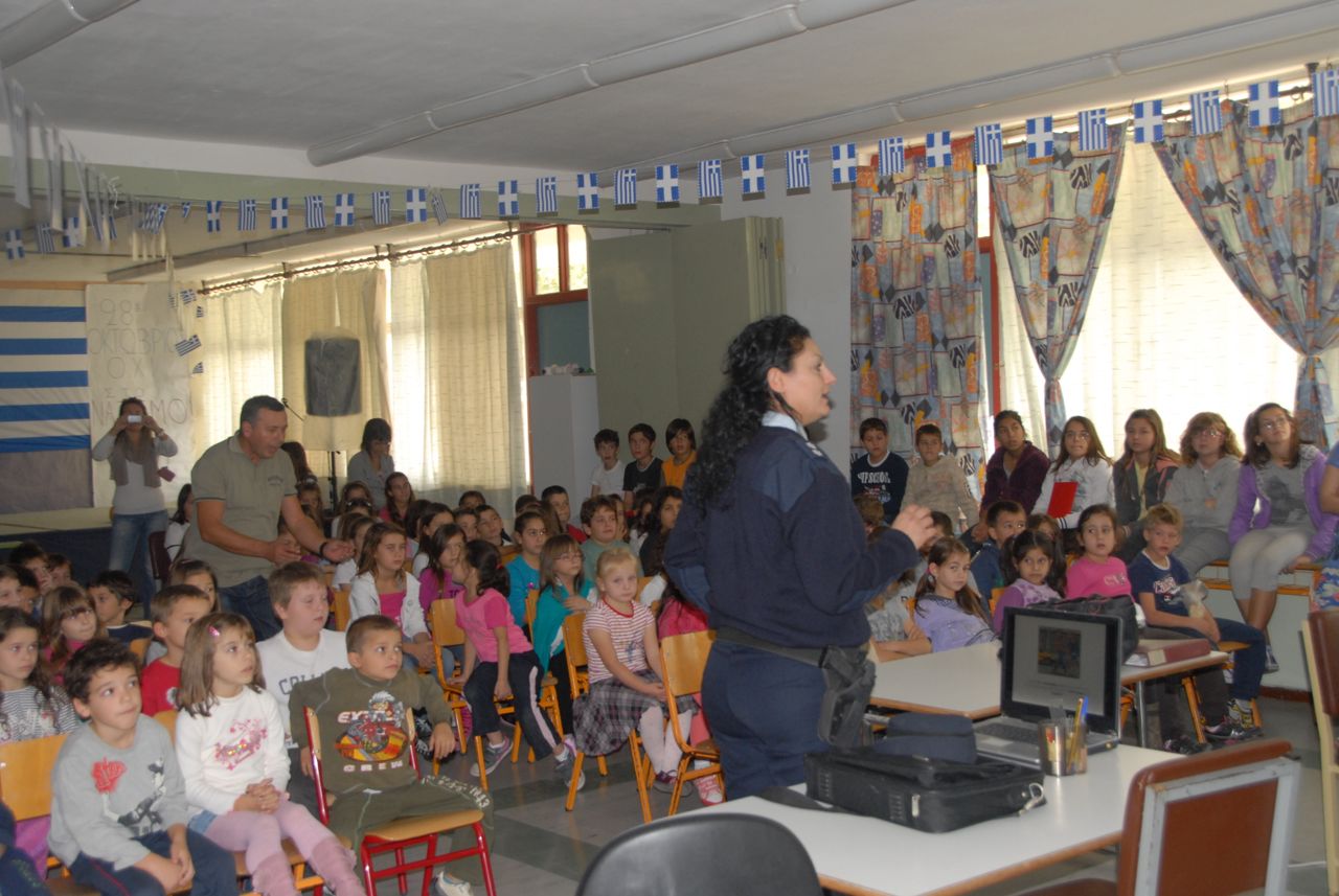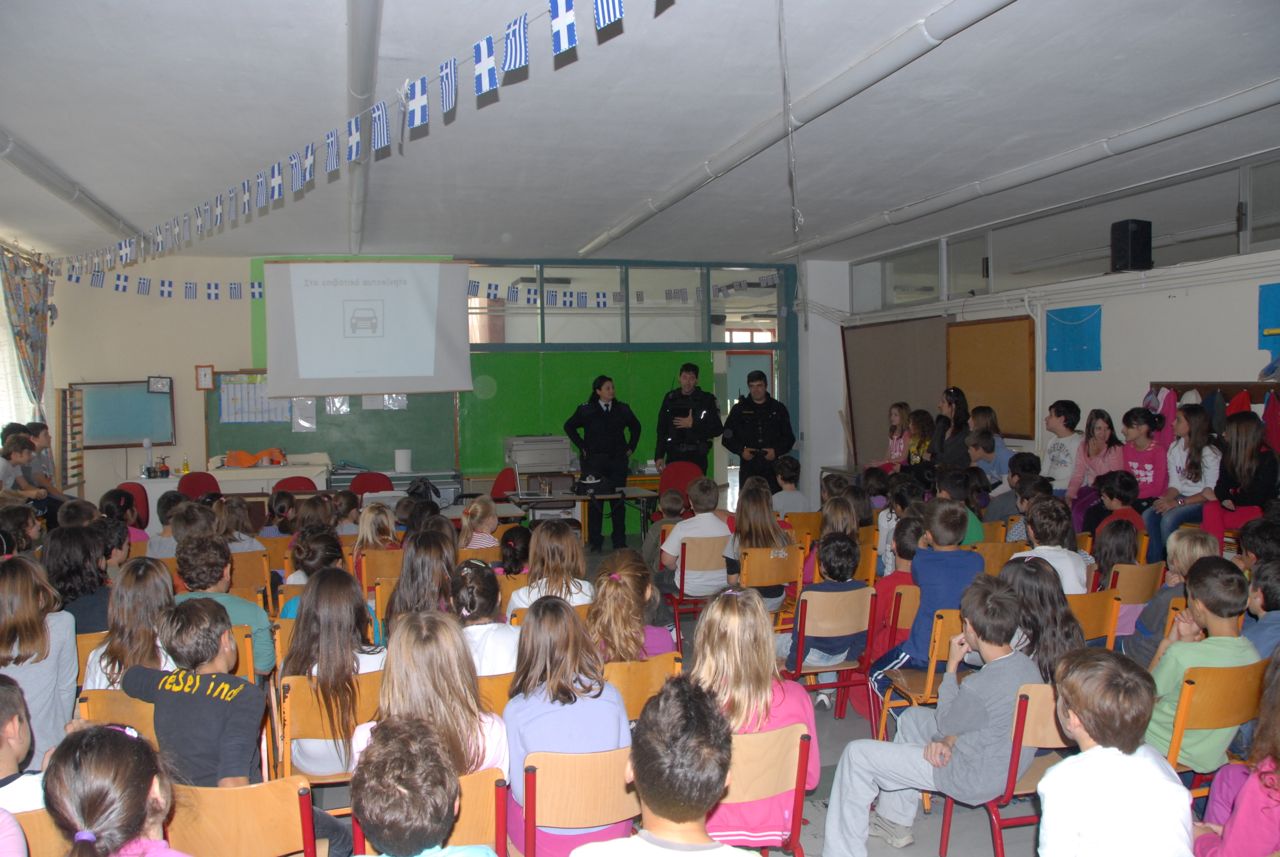 Η κ. Βιολντζή μίλησε στους μαθητές, παρουσίασε φωτογραφίες και διαφάνειες με σκοπό να τους ευαισθητοποιήσει και να τους παροτρύνει να έχουν σωστή συμπεριφορά όταν βρίσκονται στο δρόμο.