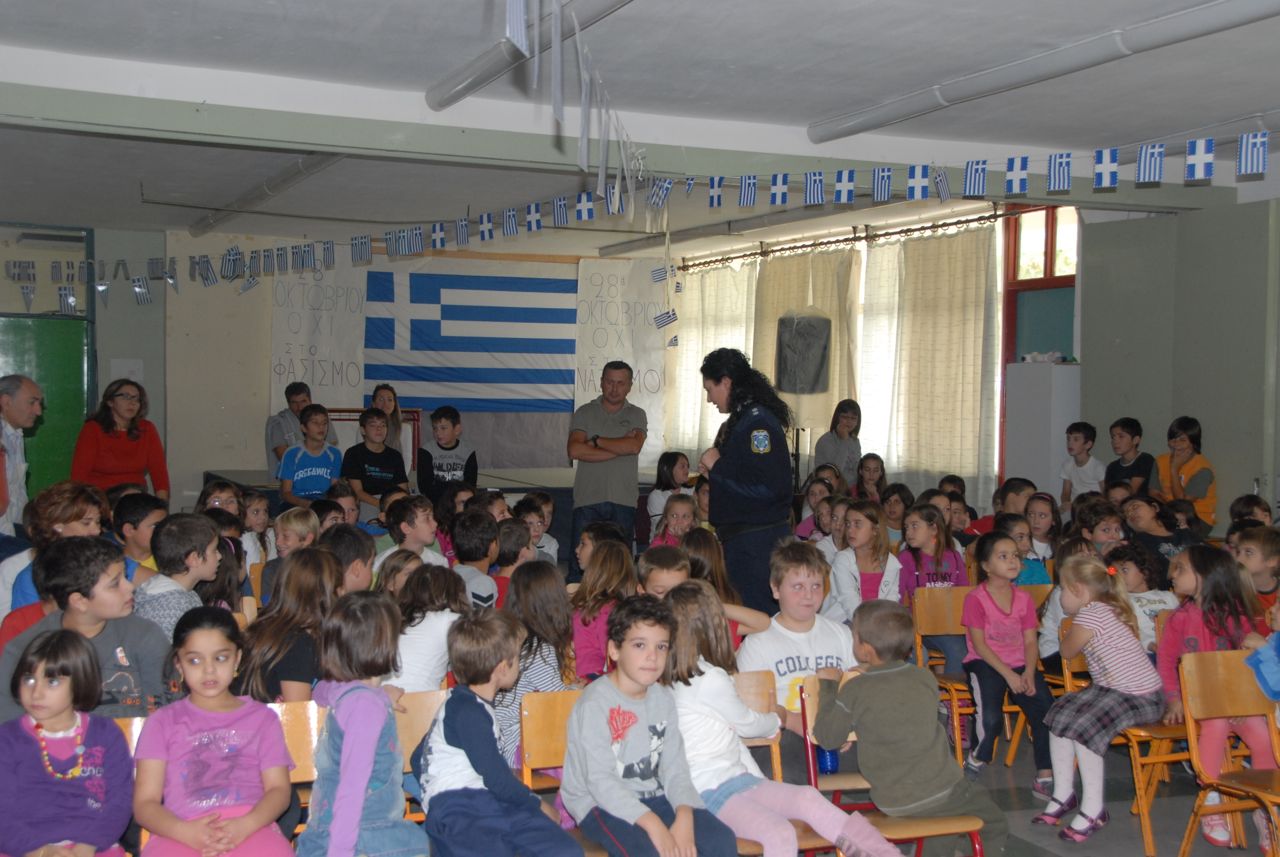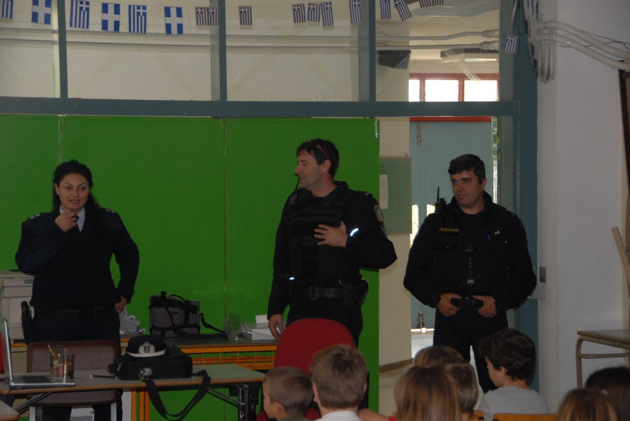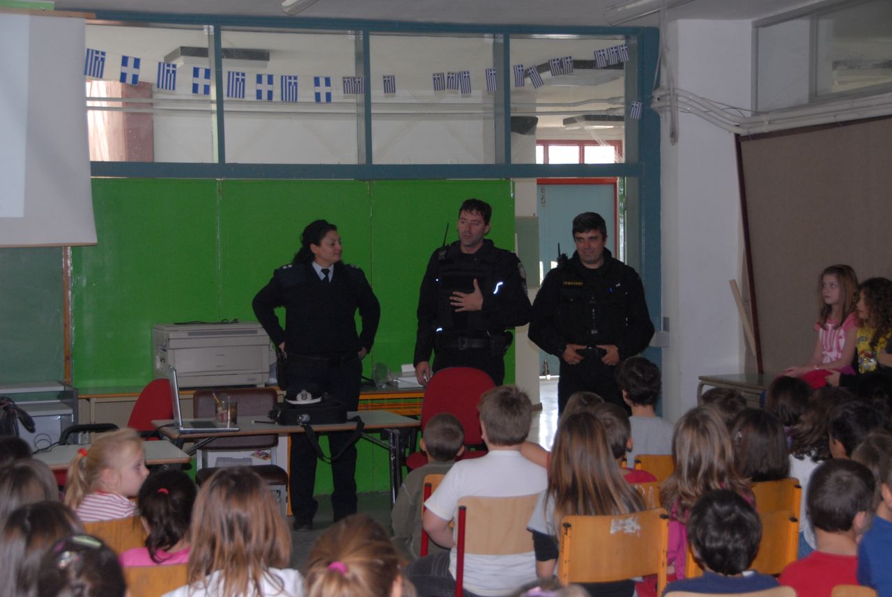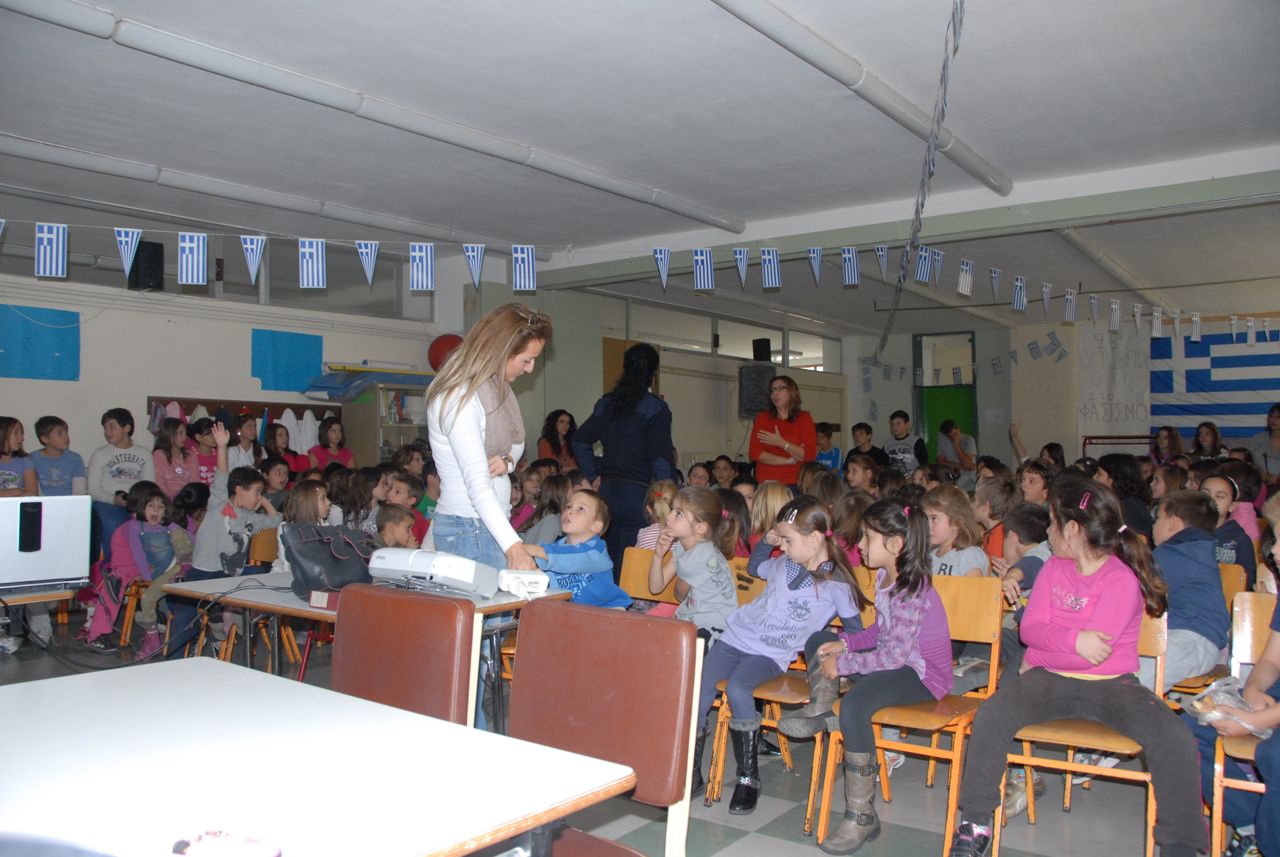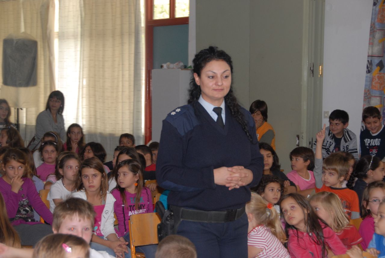 Η κ. Βιολντζή μίλησε στους μαθητές, παρουσίασε φωτογραφίες και διαφάνειες με σκοπό να τους ευαισθητοποιήσει και να τους παροτρύνει να έχουν σωστή συμπεριφορά όταν βρίσκονται στο δρόμο.