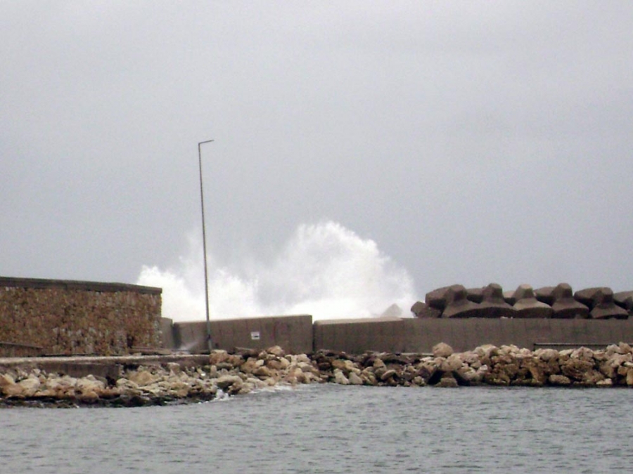 Χθες, χωρίς ο καιρός να είναι πολύ αγριεμένος από πλευράς κυματισμού, δημιουργήθηκαν και πάλι προβλήματα. Με πολύ μεγάλη ευκολία τα κύματα περνούσαν πάνω από τον τσακισμένο μόλο κι έμπαιναν στο λιμάνι, ενώ η θάλασσα περνούσε και κάτω από το μόλο, που έχει υποσκαφεί.