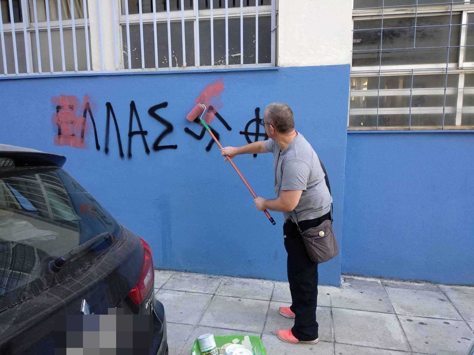 Φασιστικά συνθήματα που γράφτηκαν στους τοίχους του 4ου Δημοτικού Καλαμάτας έσβησε ο Σύλλογος Γονέων και Κηδεμόνων του σχολείου.