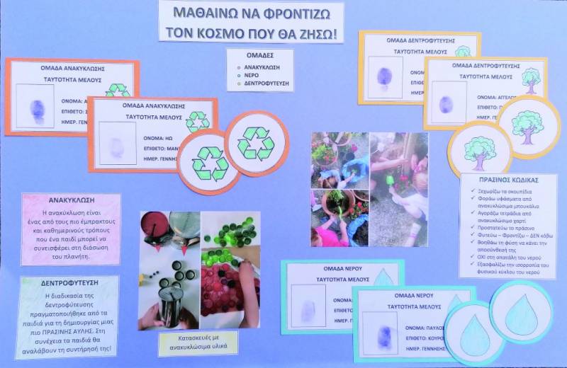 Σε συνδυασμό με τις ερωτήσεις των παιδιών που προέκυψαν από βιβλίο σχετικά με το περιβάλλον, το πρόγραμμα αναπτύχθηκε μέσω ομαδοσυνεργατικής προσέγγισης. Σκοπός της προσέγγισης ήταν η αλλαγή στάσης και η ευαισθητοποίηση των παιδιών απέναντι σε έναν περισσότερο πράσινο πλανήτη. Από τους βασικούς στόχους που τέθηκαν ήταν η απόκτηση γνώσεων και η κατανόηση εννοιών σχετικά με την ανακύκλωση, τη δεντροφύτευση, καθώς και τον περιορισμό σπατάλης νερού, σε συνδυασμό με τη δημιουργία νέων προτύπων συμπεριφοράς απέναντι στη φύση.