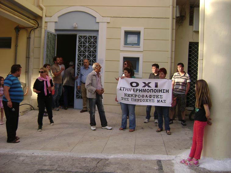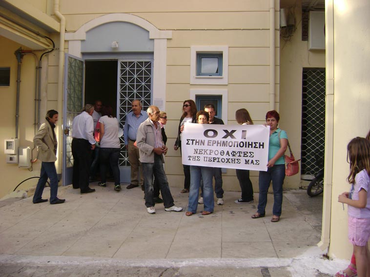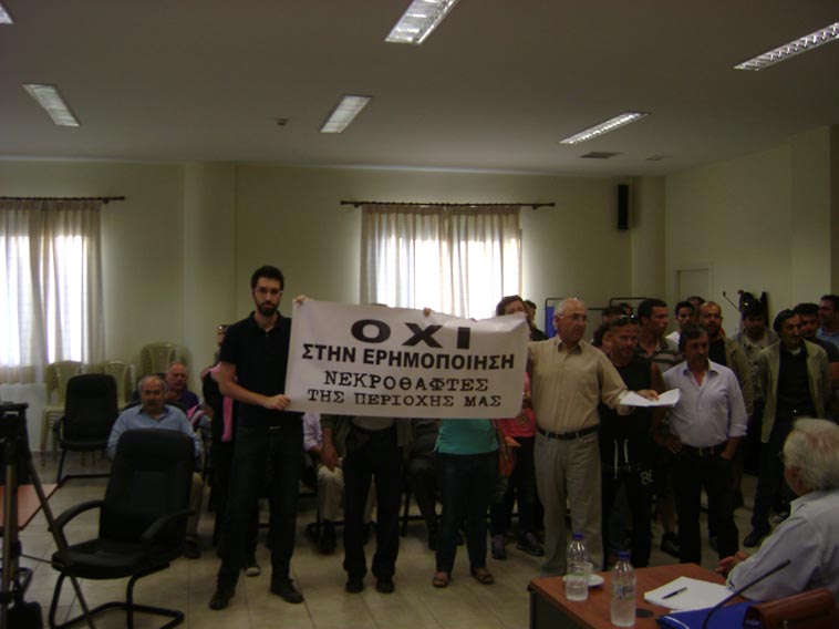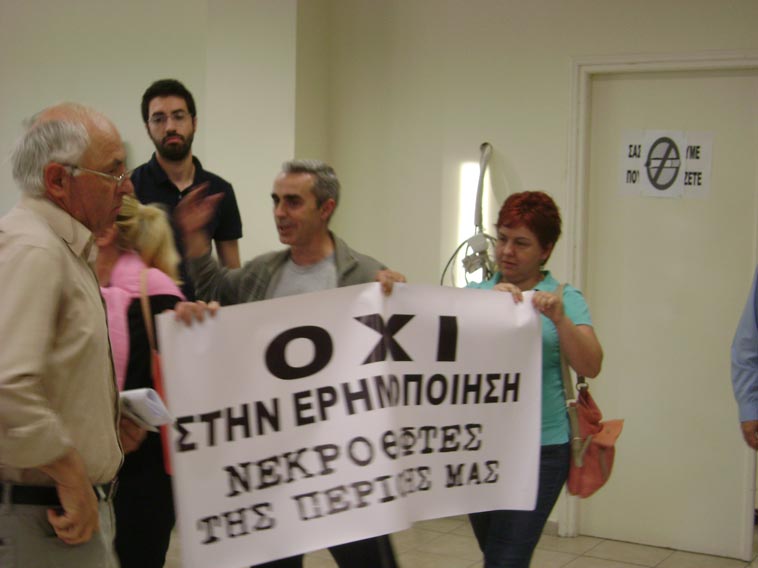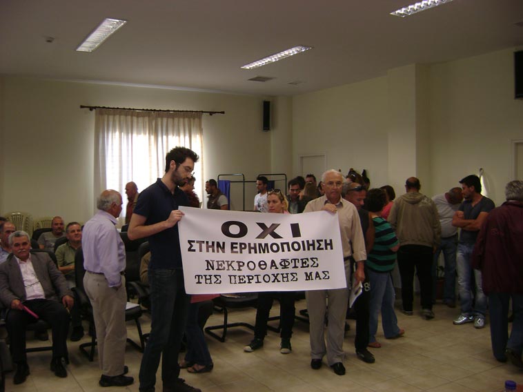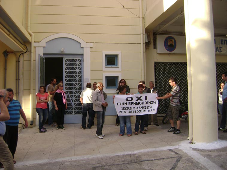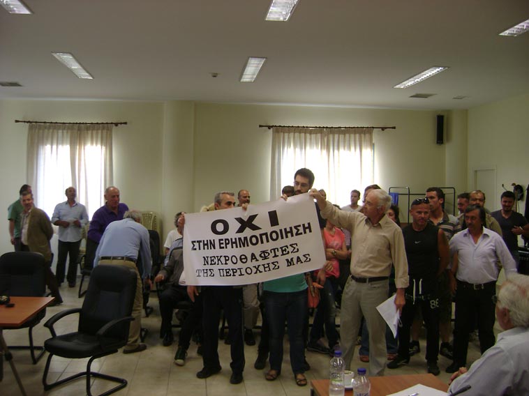 Με την δυναμική τους παρέμβαση και συγκέντρωση τόσο έξω από το Δημαρχείο όσο στην συνέχεια και εντός της αίθουσας -όπου άνοιξαν το πανό με το παραπάνω σύνθημα- απαίτησαν να μπουν ως θέμα συζήτησης οι εξελίξεις που αφορούν την περιοχή τους, σημειώνοντας ότι με την πρόσφατη απόφασή του το Δημοτικό Συμβούλιο ανοίγει τον δρόμο στο να υπάρξουν αυστηρά μέτρα για την περιοχή, όπως η αναστολή της δόμησης και της χρήσης του αιγιαλού, τα οποία καταδικάζουν την ευρύτερη περιοχή σε ερημοποίηση.