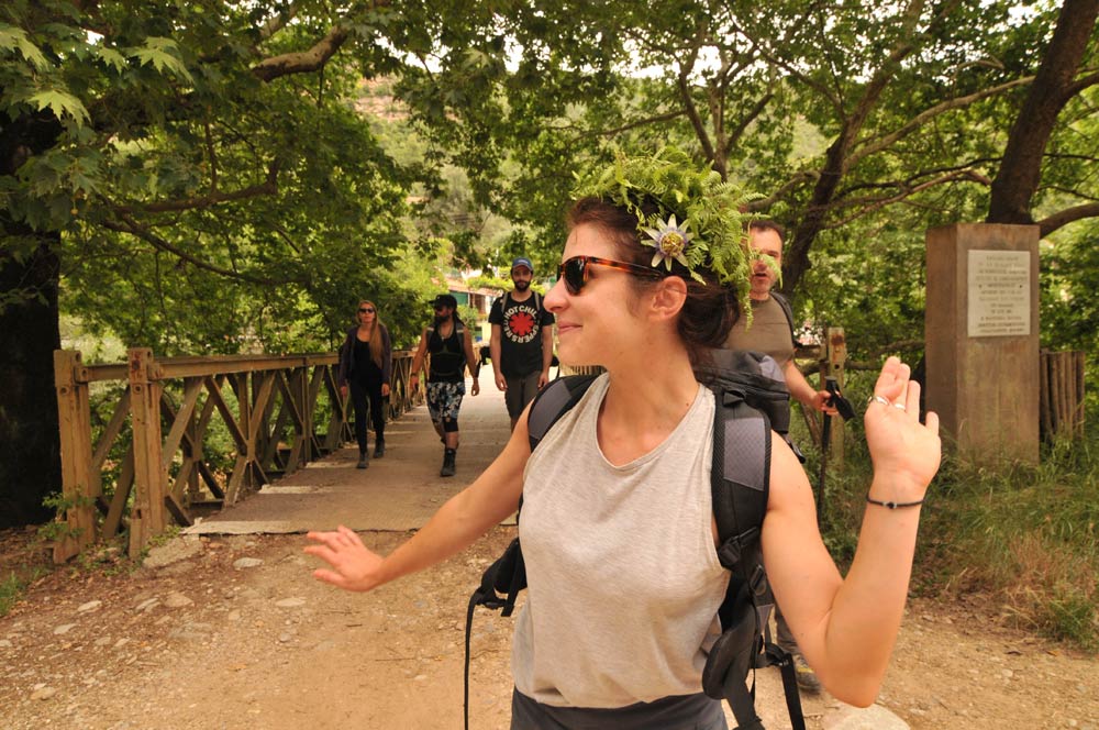 Από τη Νεμούτα κατηφορίσαμε μέσα από ένα δαίδαλο αγροτικών δρόμων και μονοπατιών προς τον ποταμό Ερύμανθο. Τα μονοπάτια αυτά κινούνται κατά μήκος ρεματιών και φαραγγιών που χύνονται στον Ερύμανθο. Επρόκειτο για μια όμορφη διαδρομή μέσα σε μια πλούσια καταπράσινη βλάστηση που εναλλασσόταν σε πολλά σημεία με τα στενά τοιχώματα των φαραγγιών. Ομως χωρίς τους φίλους μας από τη Νεμούτα δύσκολα θα βρίσκαμε τα πιο όμορφα σημεία. Χωρίς τους φίλους μας από την περιοχή το πιο πιθανό θα ήταν η περιγραφή μας να σταματούσε στο σημείο αυτό…