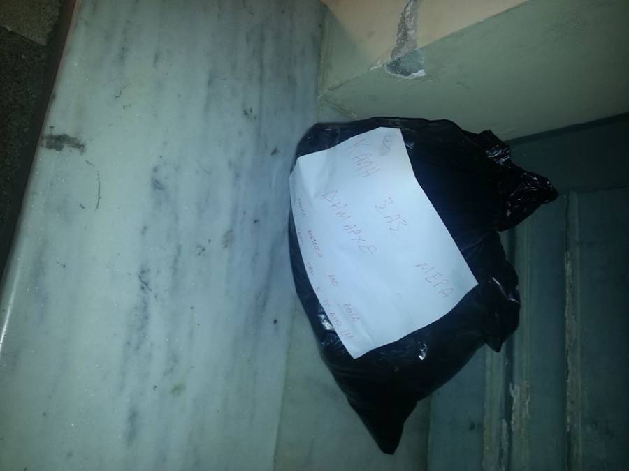 Αυτός που το εντόπισε το έβαλε σε μια μαύρη σακούλα και το απόθεσε στην είσοδο του Δημαρχείου, με ένα σημείωμα που έγραφε: