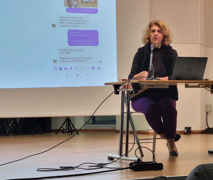 Η επιμελήτρια Ανηλίκων Καλαμάτας Αγγελική Ρουμελιώτου, προσκεκλημένη του Μουσικού Σχολείου της πόλης, μίλησε το βράδυ της Τετάρτης στους γονείς και τους εκπαιδευτικούς για τις οnline συμπεριφορές των εφήβων και τα πρώτα ανησυχητικά συμπτώματα πριν οι γονείς χρειαστεί να παρέμβουν. Συγκεκριμένα, η επιμελήτρια επισήμανε τα σημεία επαφής με το διαδίκτυο που χρήζουν προσοχής και εξήγησε “Το μοντέλο των τεσσάρων” τύπων εφήβων χρηστών, κυρίως, όμως, υπενθύμισε τις “Βιταμίνες” με τις οποίες οι γονείς οφείλουν να ενισχύουν τα παιδιά τους.