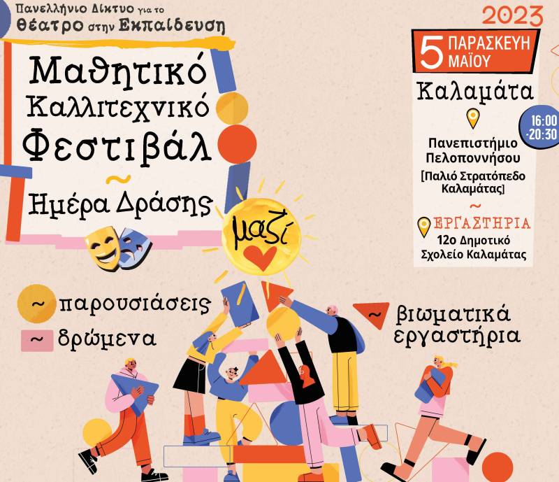 Το φεστιβάλ θα πραγματοποιηθεί από το Πανελλήνιο Δίκτυο για το Θέατρο στην Εκπαίδευση (Τοπικοί Σύνδεσμοι Μεσσηνίας) σε συνεργασία με το Πανεπιστήμιο Πελοποννήσου-Τμήμα Ιστορίας, Αρχαιολογίας και Διαχείρισης Πολιτισμικών Αγαθών, τις Διευθύνσεις Πρωτοβάθμιας και Δευτεροβάθμιας Εκπαίδευσης Μεσσηνίας, τη Σχολική Επιτροπή Πρωτοβάθμιας Εκπαίδευσης Μεσσηνίας Δήμου Καλαμάτας, την Ύπατη Αρμοστεία του ΟΗΕ για τους Πρόσφυγες και με τη στήριξη φορέων της πόλης. Το Φεστιβάλ "Μαζί" 2023 περιλαμβάνει α) παρουσιάσεις εργασιών των σχολείων και δρώμενα, β) βιωματικά εργαστήρια για παιδιά, γ) εργαστήρια για φοιτητές, σπουδαστές δ) εργαστήρια για γονείς.