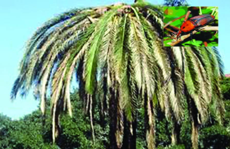 Στην περιοχή μας το κόκκινο σκαθάρι έχει προκαλέσει ζημιά σε φοίνικες στη Μικρή Μαντίνεια και την παραλιακή Αβία, μετά την Κυπαρισσία και το Καλό Νερό. Ενας φοίνικας προσβεβλημένος παρουσιάζει την εικόνα ομπρέλας, πέφτουν και ανοίγουν τα φύλλα του.