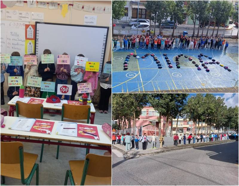 Οι εκπαιδευτικοί του σχολείου αποφάσισαν να καταστήσουν αυτή τη μέρα ξεχωριστή, δίνοντας έμφαση στην ανάγκη να δημιουργηθεί στο σχολείο ένα περιβάλλον , όπου ο καθένας νιώθει ασφαλής και σεβαστός. Η δράση ξεκίνησε με την προβολή βίντεο και ομιλιών από τους εκπαιδευτικούς, που ανέδειξαν τη σημασία της αλληλεγγύης και του σεβασμού στην καθημερινότητα του σχολείου. Οι μαθητές των μεγαλύτερων τάξεων σχημάτισαν τη λέξη "ΜΙΛΑ" με τις τσάντες τους στο προαύλιο του σχολείου, ένα μήνυμα που καλεί όλους να επικοινωνούν και να μοιράζονται τα συναισθήματά τους. Ένα από τα ωραιότερα και πιο σημαντικά σημεία της δράσης ήταν η συγκέντρωση όλων των μαθητών έξω από το σχολείο, όπου κρατώντας πλακάτ και πανό, διεμήνυσαν τις αξίες της ασφάλειας και της αλληλεγγύης. Στη συνέχεια, ολόκληρη η σχολική κοινότητα περικύκλωσε με τα χέρια της το σχολείο, δημιουργώντας ένα σύμβολο προστασίας και αλληλεγγύης.
