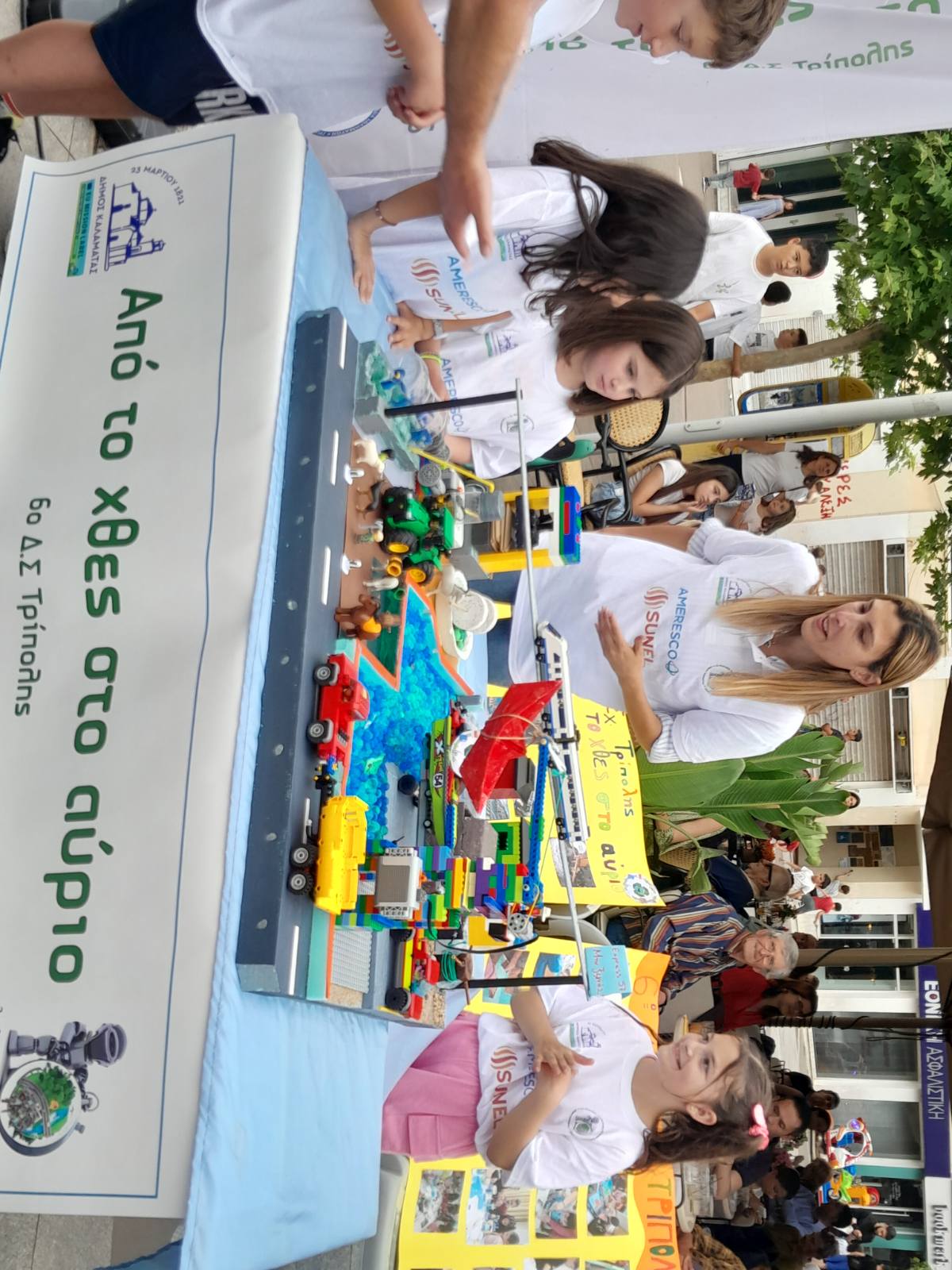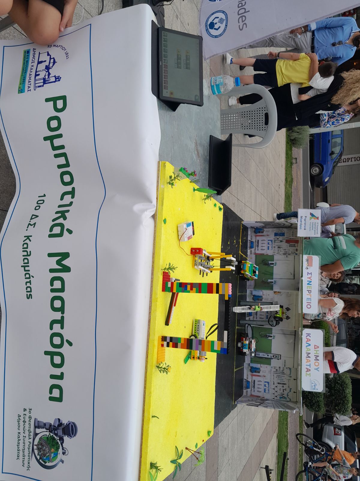 Το απόγευμα του Σαββάτου η πλατεία γέμισε παιδιά και τραπέζια με τις ξεχωριστές δημιουργίες τους, με ρομπότ και άλλες πατέντες, με στόχο, αξιοποιώντας τις νέες τεχνολογίες να κάνουν καλύτερη τη ζωή και τον κόσμο μας τα επόμενα χρόνια.