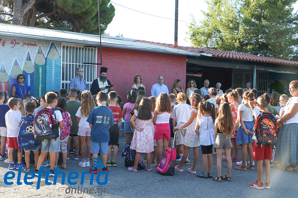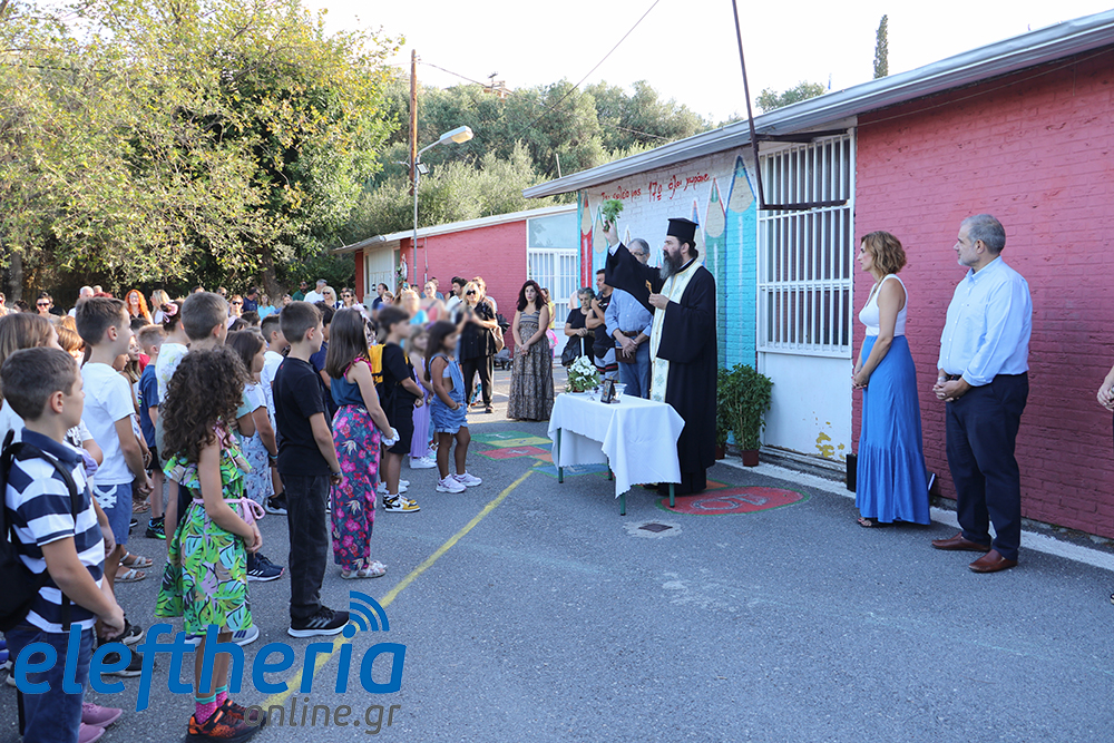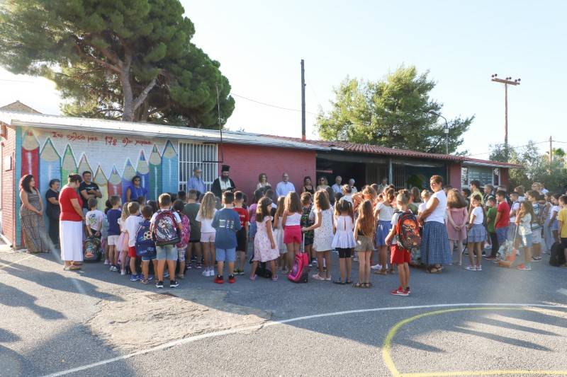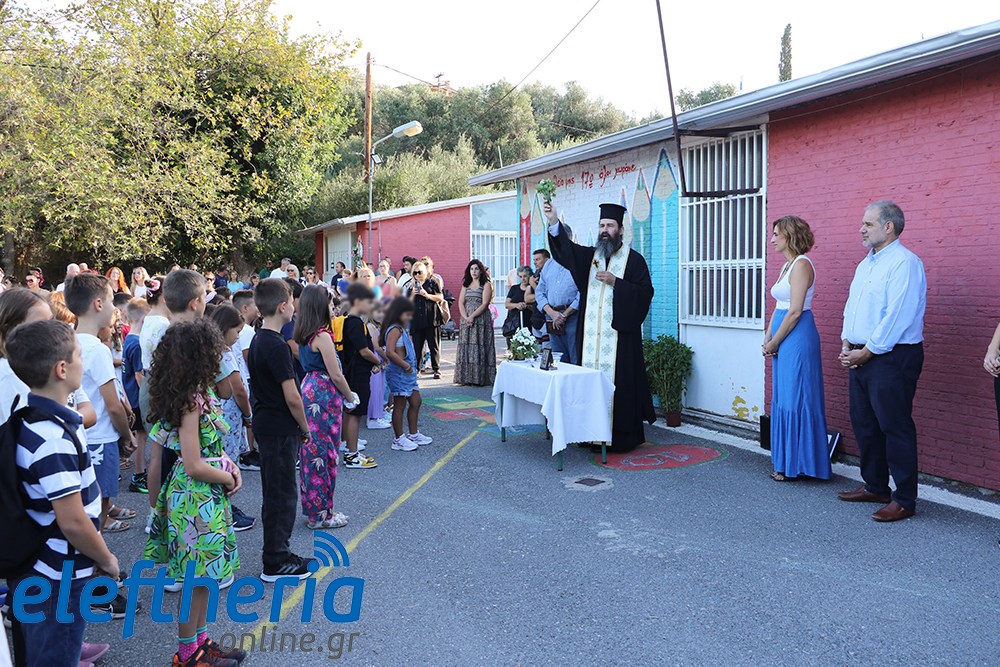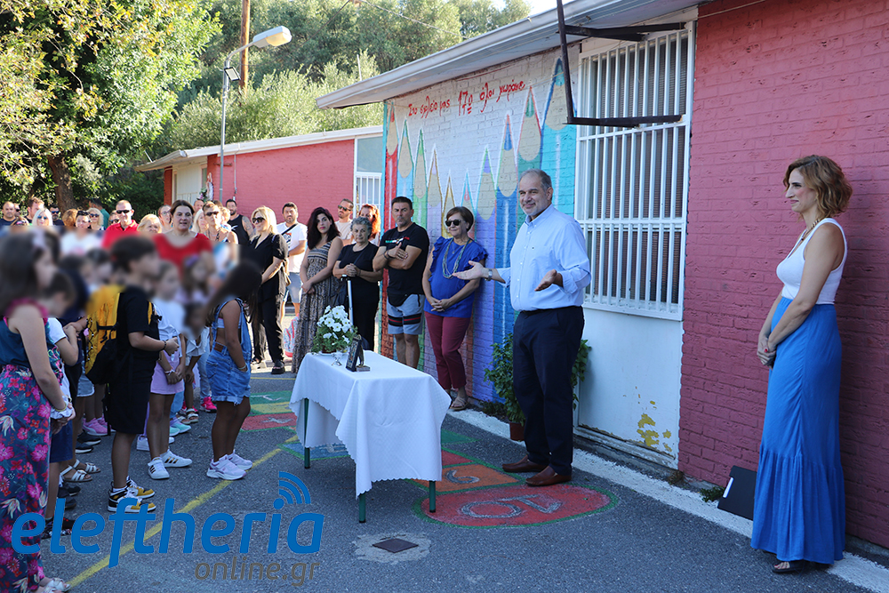 Η διευθύντρια Μένια Κρέπαπα, αφού ευχήθηκε καλή και δημιουργική σχολική χρονιά, κάλεσε όλους τους άλλους μαθητές να καλωσορίσουν τα πρωτάκια - και αυτό έγινε με χειροκροτήματα -, επισημαίνοντας ότι “θέλουμε το σχολείο μας να είναι μια οικογένεια, να ερχόμαστε και να φεύγουμε χαρούμενοι”. Και σημείωσε ότι “για τα παιδιά είμαστε εδώ και για να βοηθήσουμε τους γονείς”.