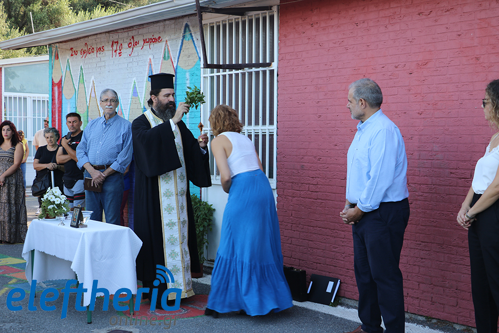Στο αγιασμό του 17ο Δημοτικού που εξακολουθεί να στεγάζεται σε λυόμενα, τα οποία προσέφερε η Ολλανδική κυβέρνηση στη σεισμόπληκτη Καλαμάτα, παραβρέθηκε ο περιφερειακός διευθυντής Εκπαίδευσης Δημήτρης Οικονομόπουλος. Παρατήρησε ότι “ξεκινάμε με όνειρα, με προσδοκίες και με στόχο να είναι χαρούμενα τα παιδιά, να προχωρούν στη γνώση και να είναι γεμάτα μέσα τους”.