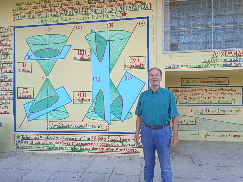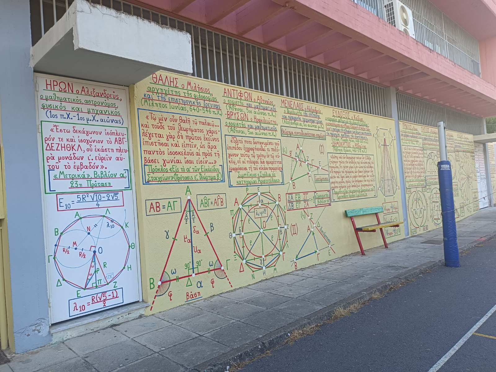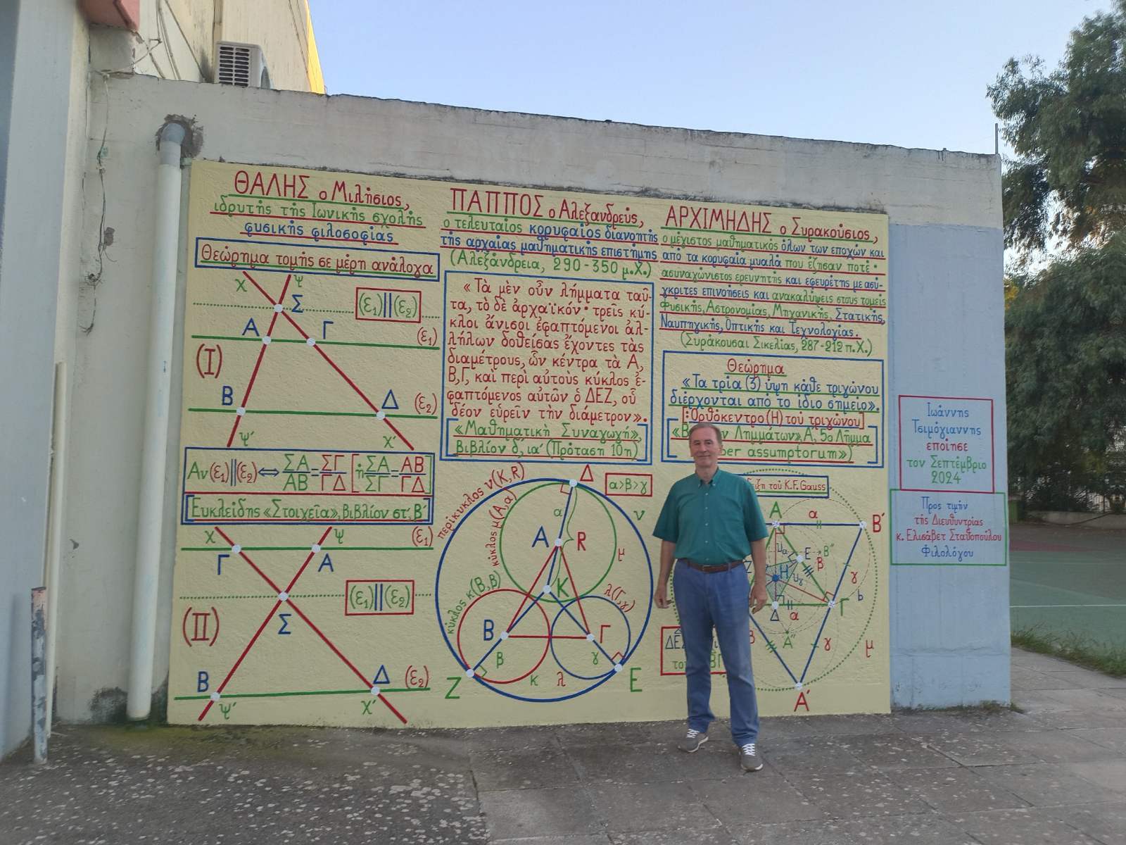 Η ιδέα αυτή “γεννήθηκε” το 2021 μέσα από τους περιορισμούς στις μετακινήσεις λόγω της πανδημίας, δημιουργώντας τότε την “οδό Ευκλείδειας Γεωμετρίας” στην Ηφαίστου όπου κατοικεί. Εκτοτε, άνοιξε ο “γεωμετρικός ασκός του Αιόλου”, υπενθυμίζοντάς με την διακριτική αλλά συνάμα ξεχωριστή του παρουσία πως τα πτυχία πολλές φορές δεν έχουν τόσο μεγάλη αξία, αν πρωτίστως δεν αγαπάς αυτό που κάνεις. Πόσο μάλλον χωρίς οικονομική ανταμοιβή, αλλά ψυχική...