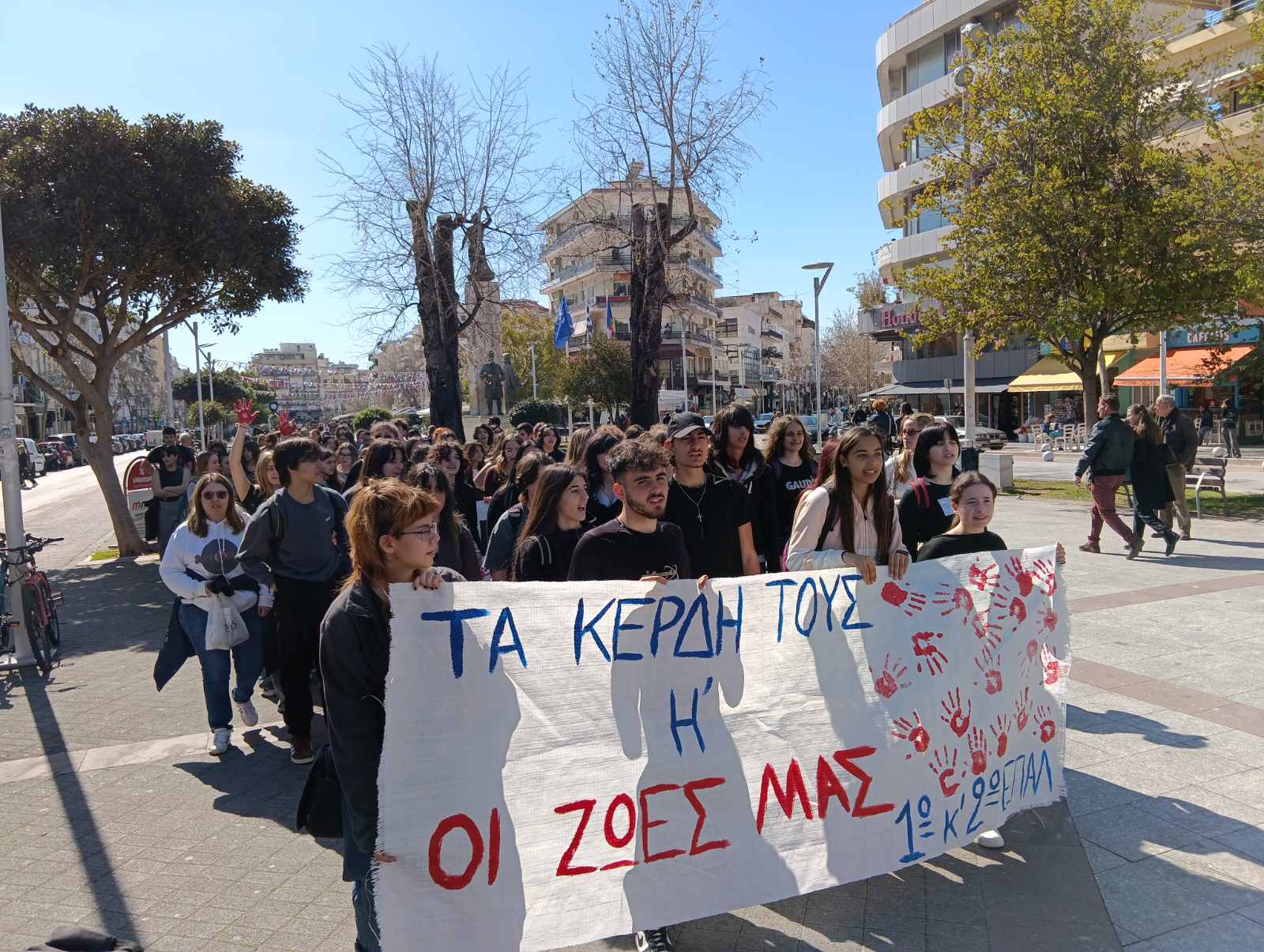 Αναλυτικά, ο μαθητής Νίκος Νικόπουλος, από το 3ο Λύκειο, επισήμανε ότι δεν ξεχνούν τους 57 νεκρούς της τραγωδίας στα Τέμπη και πως θα γίνουν η φωνή τους, για να μην συγκαλυφθεί το έγκλημα. Παρατήρησε ότι δεν έχουν εμπιστοσύνη στο κράτος που δεν προστατεύει τους νέους και τους πολίτες κι εξέφρασε την αντίδραση των μαθητών στις τριπλές πανελλαδικές εξετάσεις στο Λύκειο με τράπεζα θεμάτων. Τάχθηκε κατά των φροντιστηρίων από το Δημοτικό και σημείωσε ότι “δεν θέλουμε τα όνειρά μας να σπουδάσουμε, να μετριούνται με ευρώ”. Ζήτησε να αποδοθούν οι ευθύνες στους υπεύθυνους για το έγκλημα στα Τέμπη, όσο ψηλά και αν βρίσκονται και να μην υπάρξουν άλλα Τέμπη κι εγκλήματα.