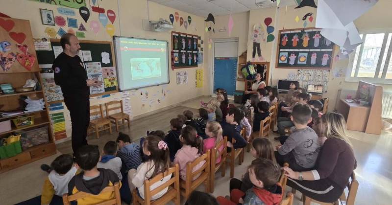 Στο πλαίσιο του εργαστηρίου δεξιοτήτων «Σεισμός! Και τώρα τι κάνω;», από την θεματική ενότητα « Φροντίζω το περιβάλλον - Κλιματική Αλλαγή - Φυσικές Καταστροφές - Πολιτική Προστασία», τρία μέλη της ΟΑΚ μίλησαν στους μαθητές για την πρόληψη και τη σωστή αντίδραση σε περίπτωση σεισμού, την αντιμετώπιση αστικών πυρκαγιών και τη σημασία της ψυχραιμίας και της ετοιμότητας.