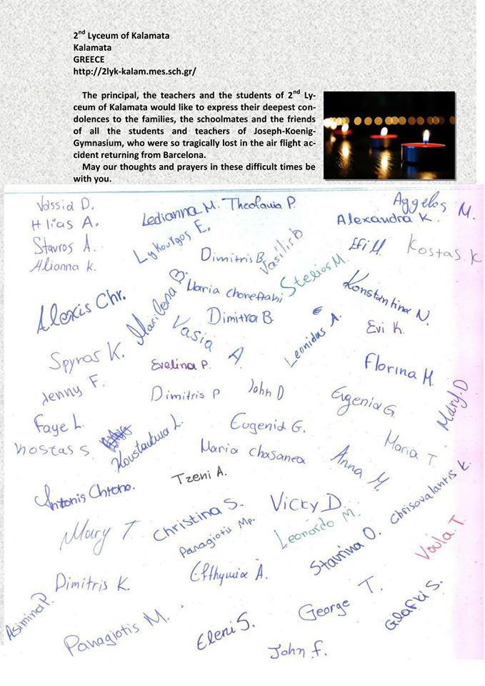 Το σχολείο από την Καλαμάτα απέστειλε ηλεκτρονικά την ακόλουθη συλλυπητήρια επιστολή: