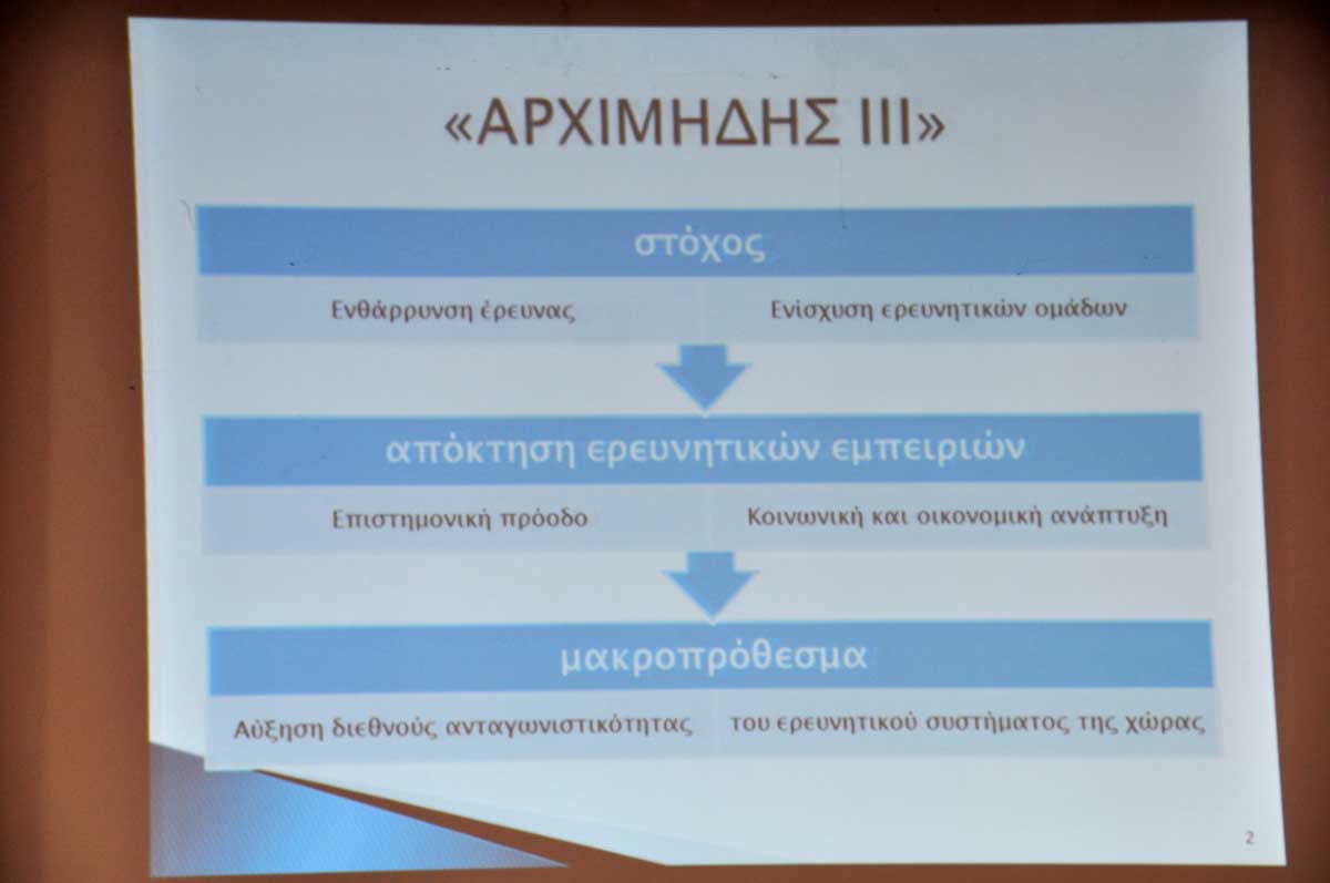 Στο πλαίσιο της ημερίδας παρουσιάστηκαν ερευνητικές εργασίες του προγράμματος και συμμετείχαν ως ομιλητές οι επιστημονικοί υπεύθυνοι των υποέργων της σχετικής πράξης.